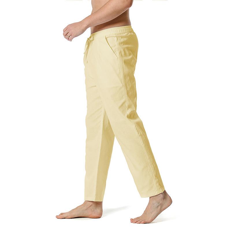 Linen Pants Straight Leg Pants Cotton Loose Casual Elastic Waist Pants Men's Solid Color Trousers