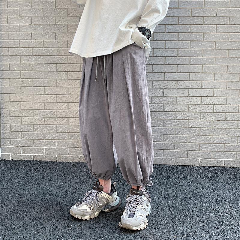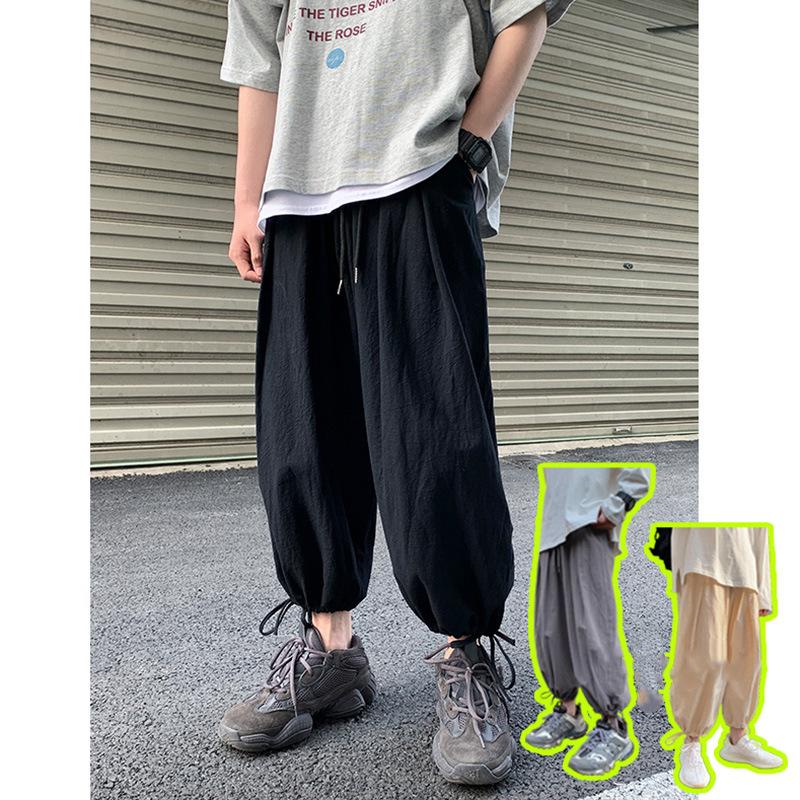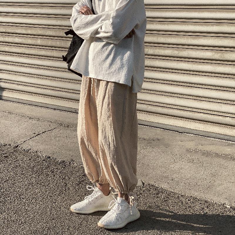 Linen Pants Straight Leg Pants Drawstring Lightweight Elastic Beach Pants Cotton and Linen Beam Feet Linen Bloomers