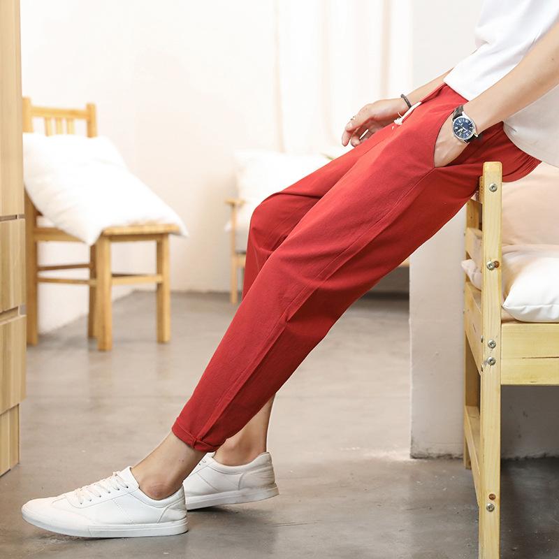 Linen Pants Straight Leg Pants Drawstring Lightweight Elastic Beach Pants Fashion Casual Pants Men's Sports Pants