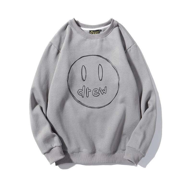 Justin Bieber Drew House High Street Wind Dhouse Graffiti Smiley Face FleeceLined Crew Neck Sweater Men's and Women's Tops