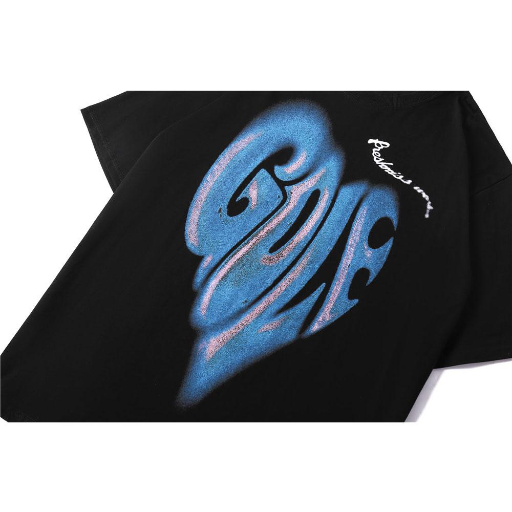 Men T Shirt Summer Casual Tops Love Heart Letter Print Short-Sleeve T-shirt Men round Neck Trend Loose Half Sleeve