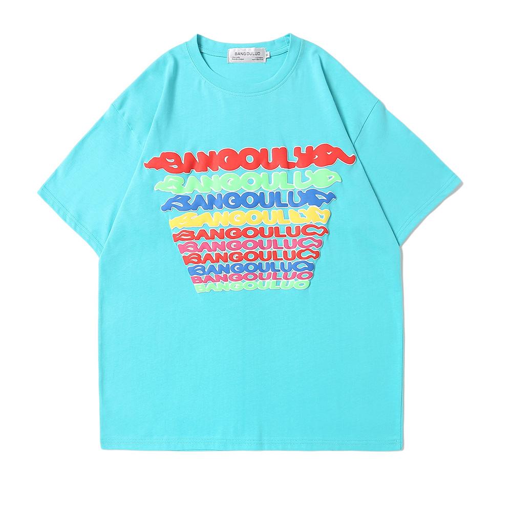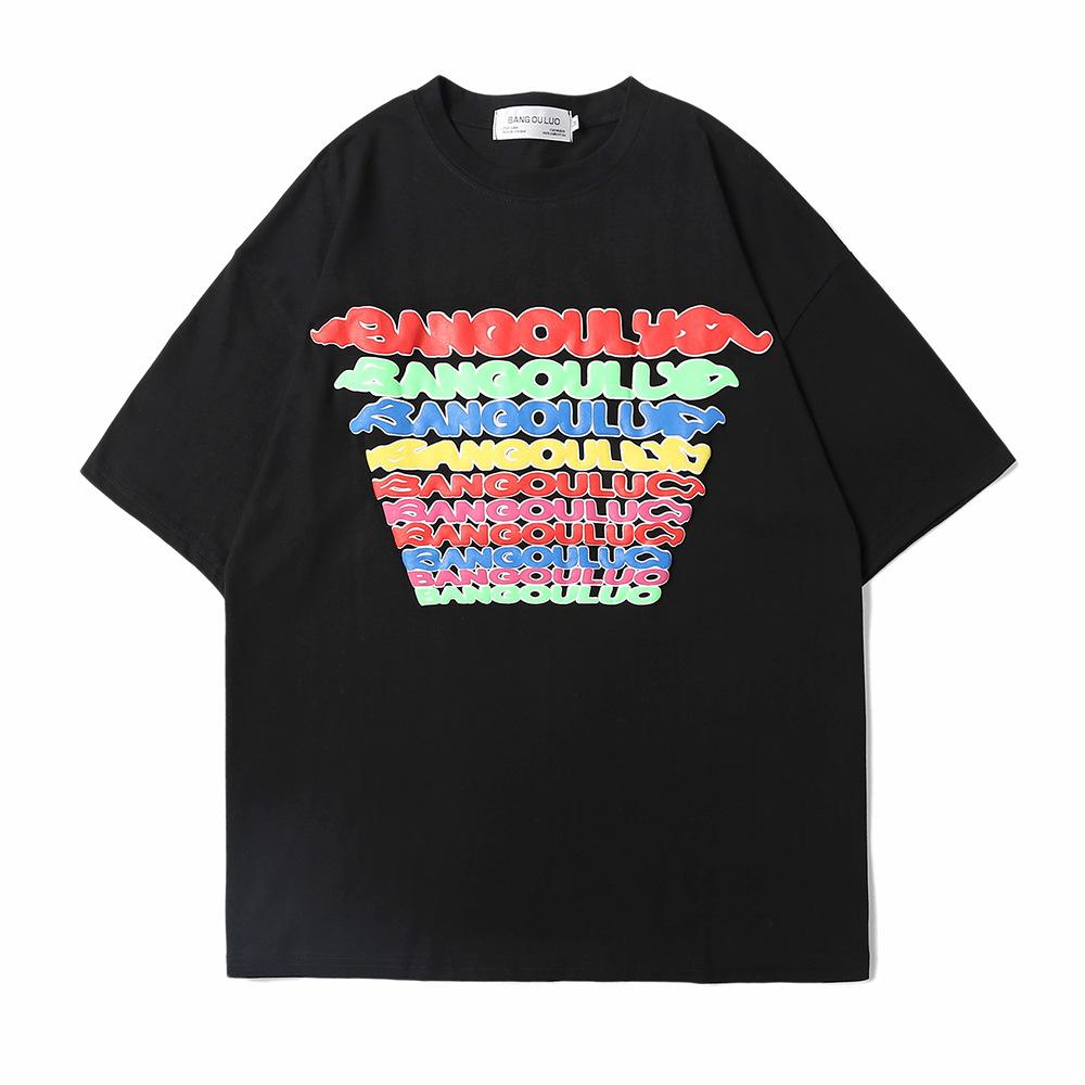 Men T Shirt Summer Casual Tops Letter Print Short-Sleeve T-shirt Men's Fashion Brand round Neck Half Sleeve Trendy Loose Pullover