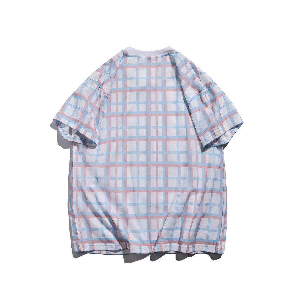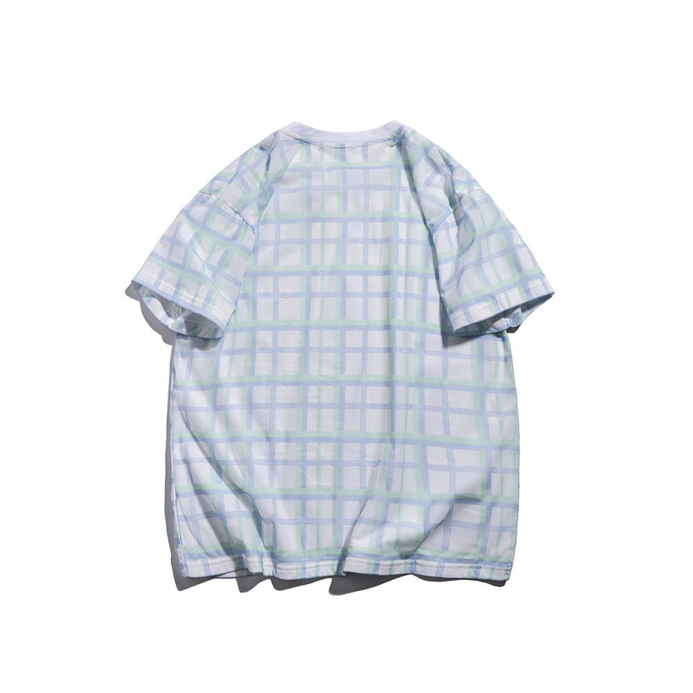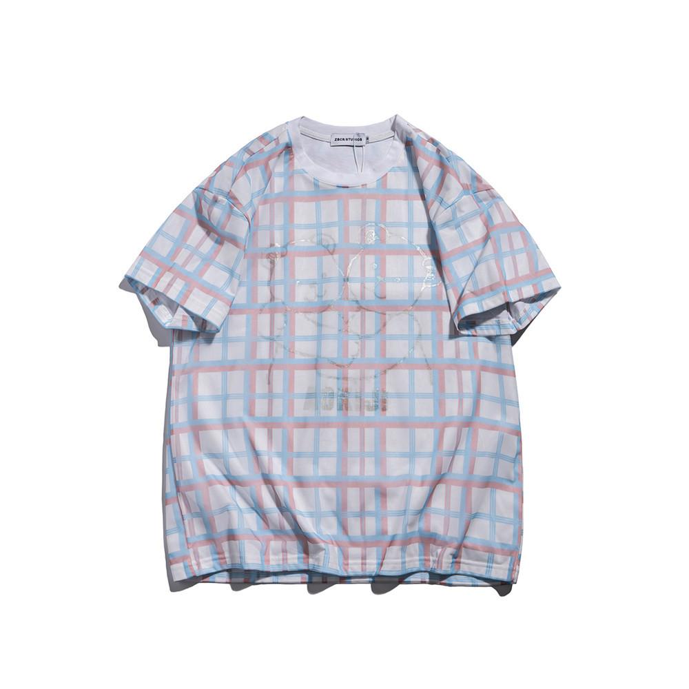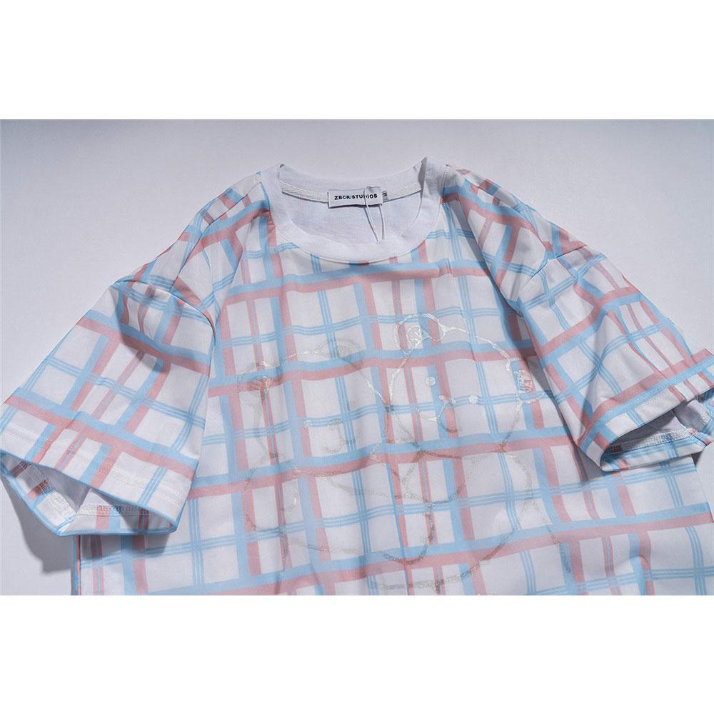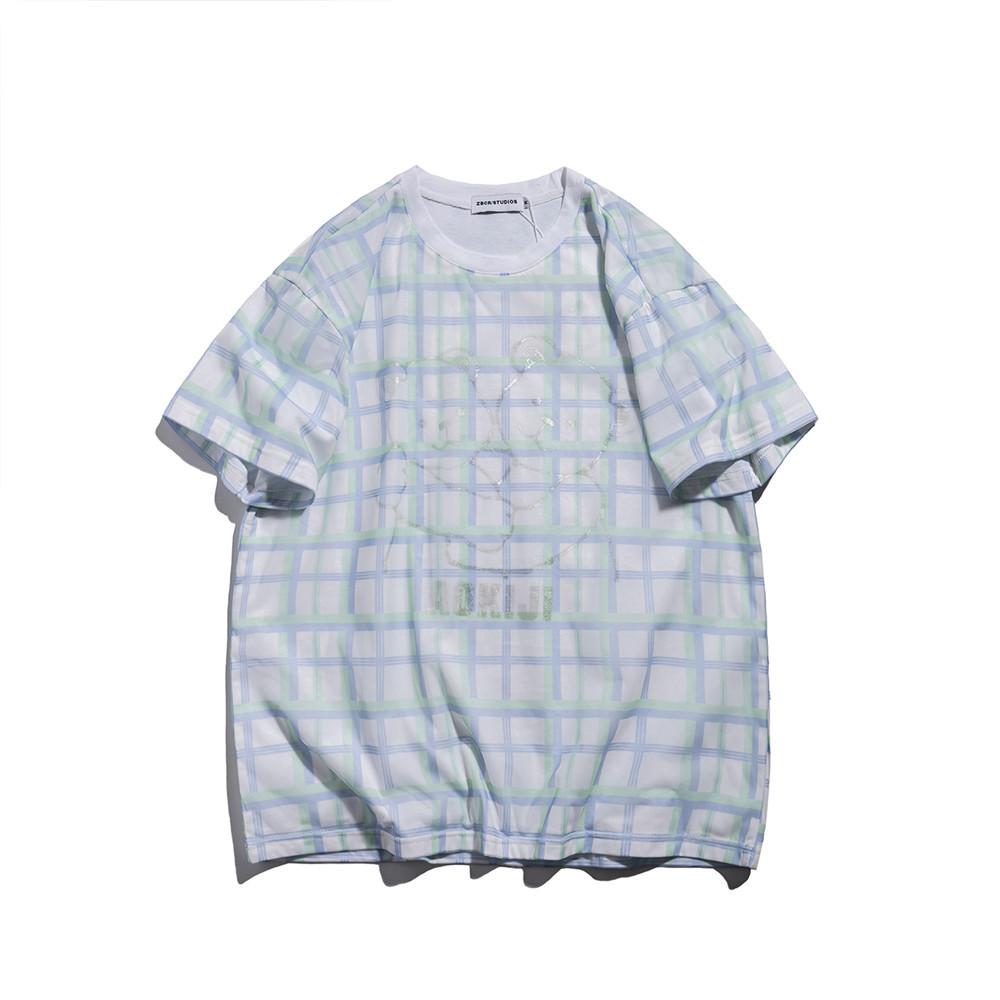 Men T Shirt Summer Casual Tops Summer Casual Cartoon Bear Printed Plaid Short Sleeve T-shirt
