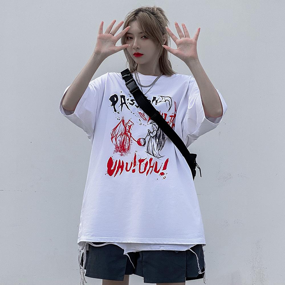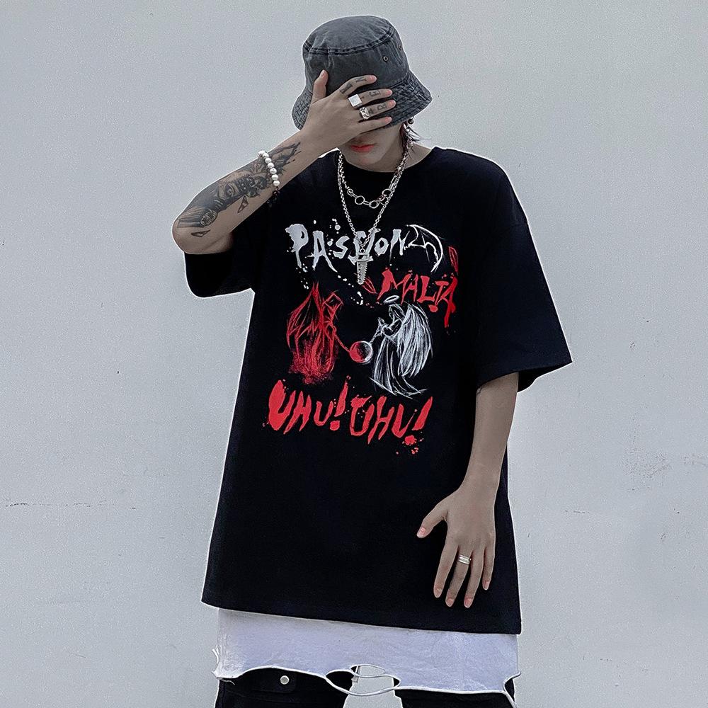 Men's T Shirt Summer Casual Tops Printed Short Sleeve T-shirt Men's High Street Fashion Brand round Neck Half Sleeve Dark Street