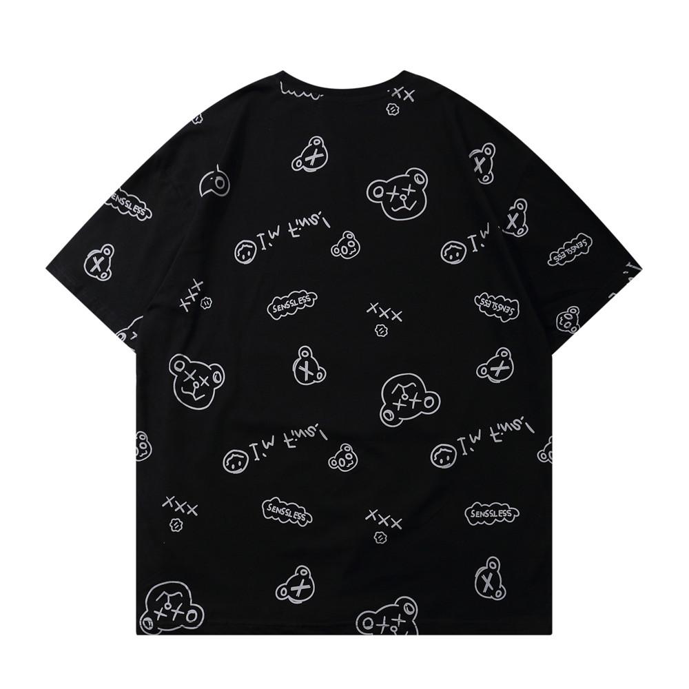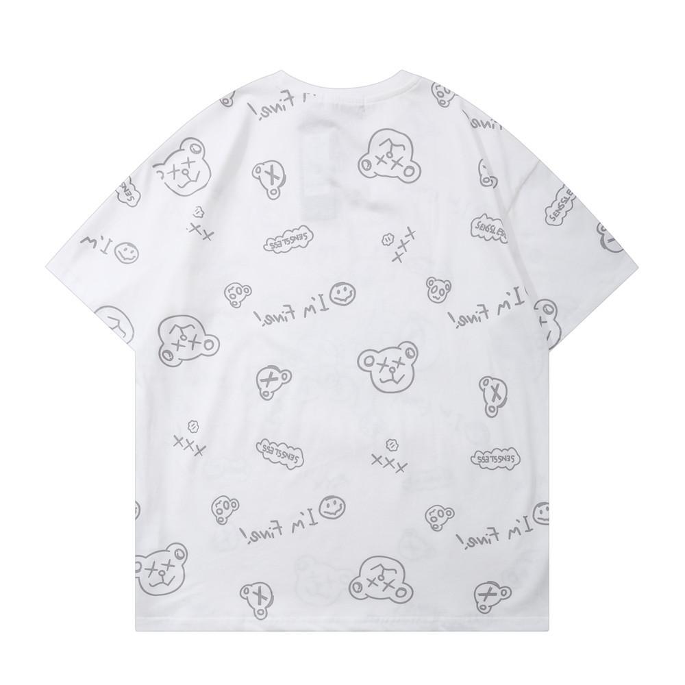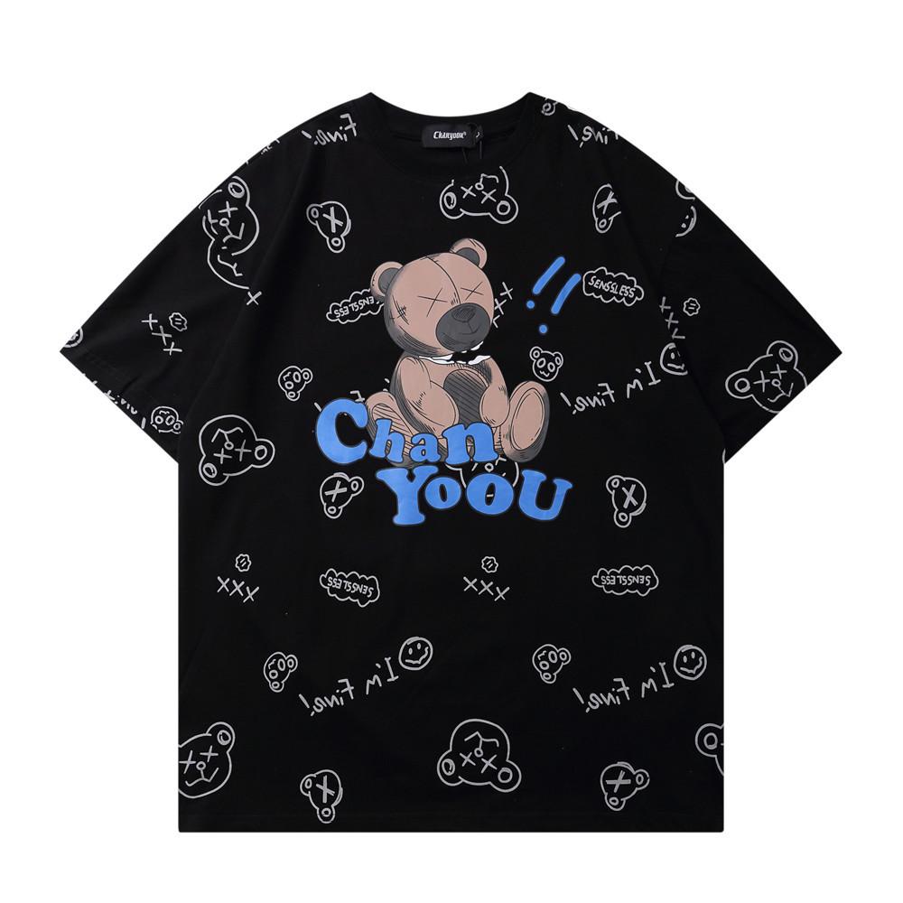 Men's T Shirt Summer Casual Tops Cartoon Bear Full Printed Short Sleeve T-shirt Men's round Neck Half Sleeve Idle Style Trendy Half Sleeve