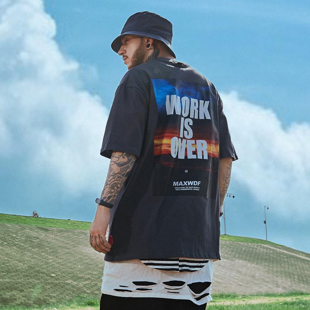 Men T Shirt Summer Casual Tops Landscape Printing Short Sleeve T-shirt Fashion round Neck Half Sleeve