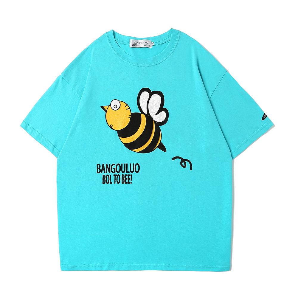 Men's T Shirt Summer Casual Tops Cartoon Rice Pink Printed Short Sleeve T-shirt Men's round Neck Half Sleeve Trendy Loose Half Sleeve T-shirt