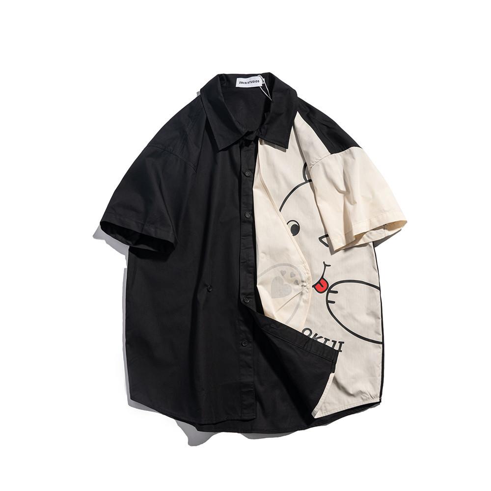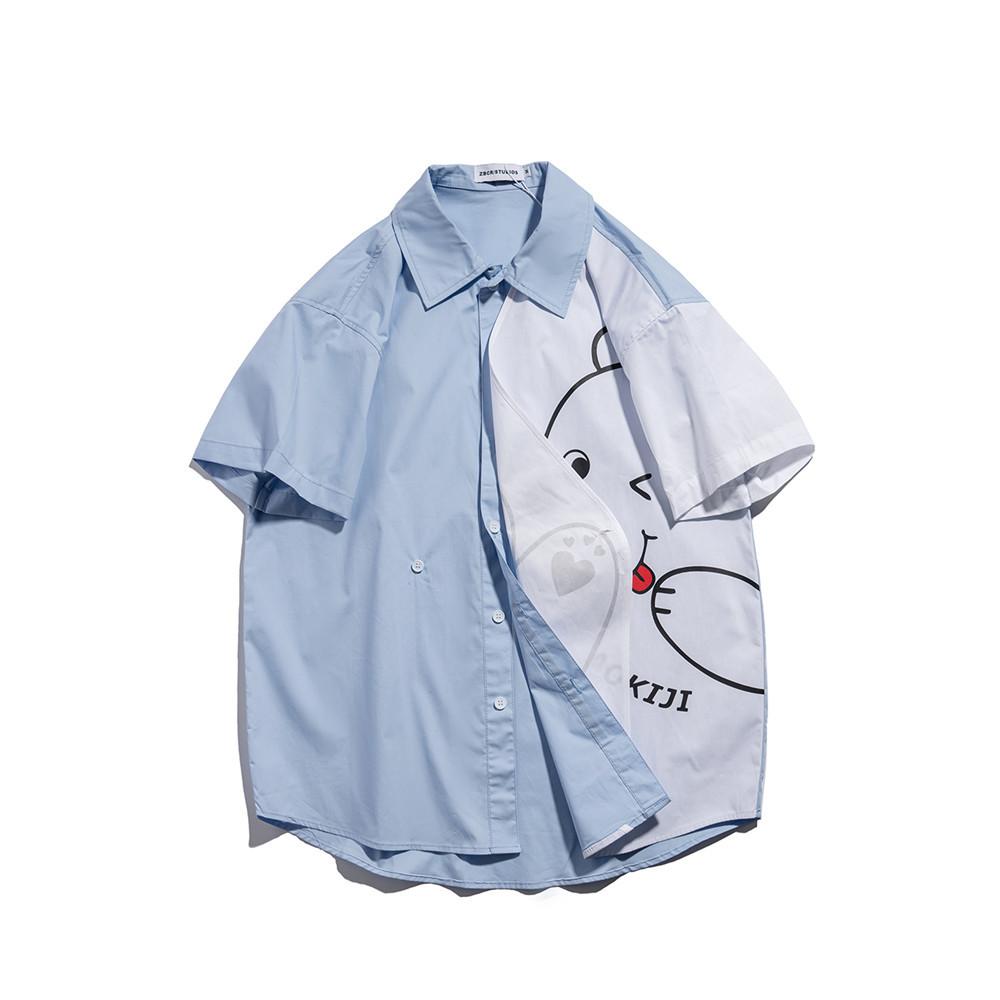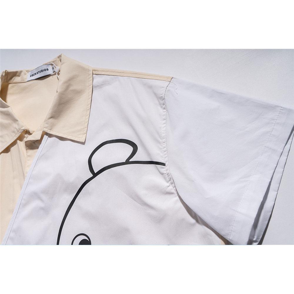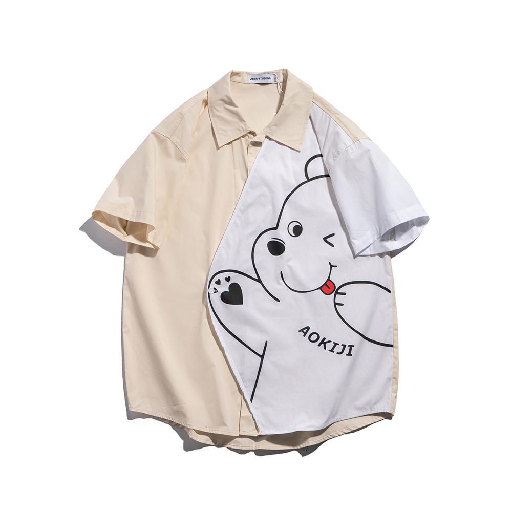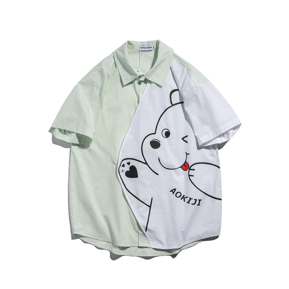 Men T Shirt Summer Casual Tops Cartoon Bear Multicolor Printing Fashion Cropped Sleeve