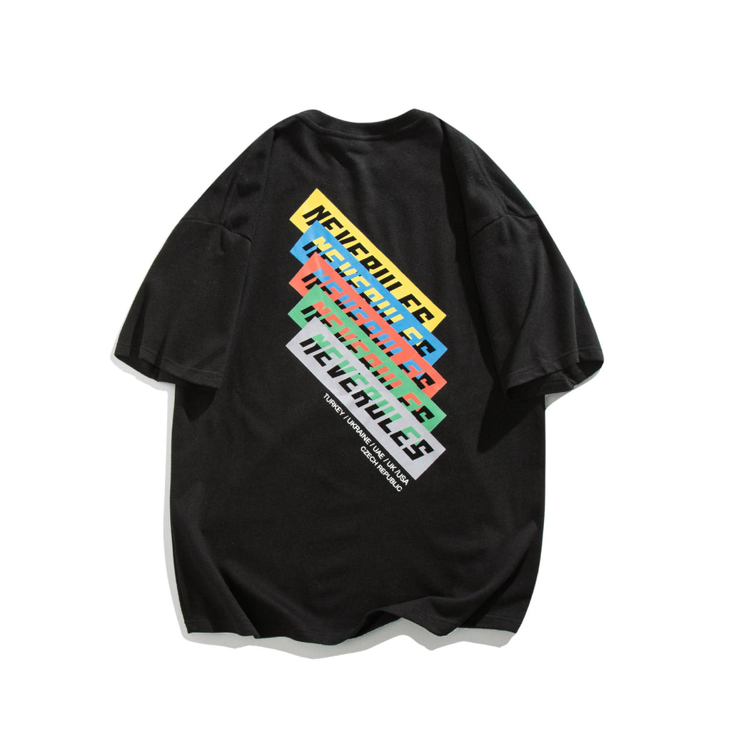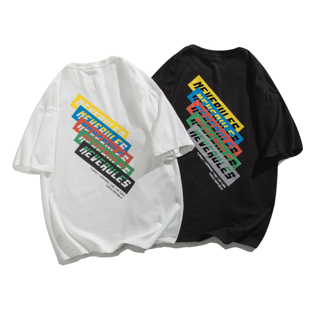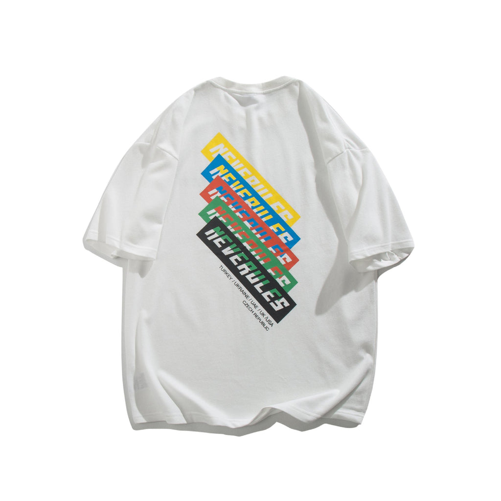 Men T Shirt Summer Casual Tops Men's Clothes Summer Wear Vintage Men's round Neck Short Sleeve Casual Loose Letter Color-Striped Printing