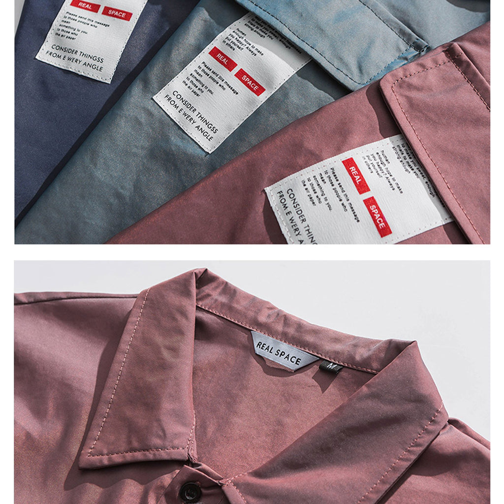 Men T Shirt Summer Casual Tops Men's Clothes Summer Wear Men's Lapel Shirt Multi-Bag Reflective Tooling Cardigan