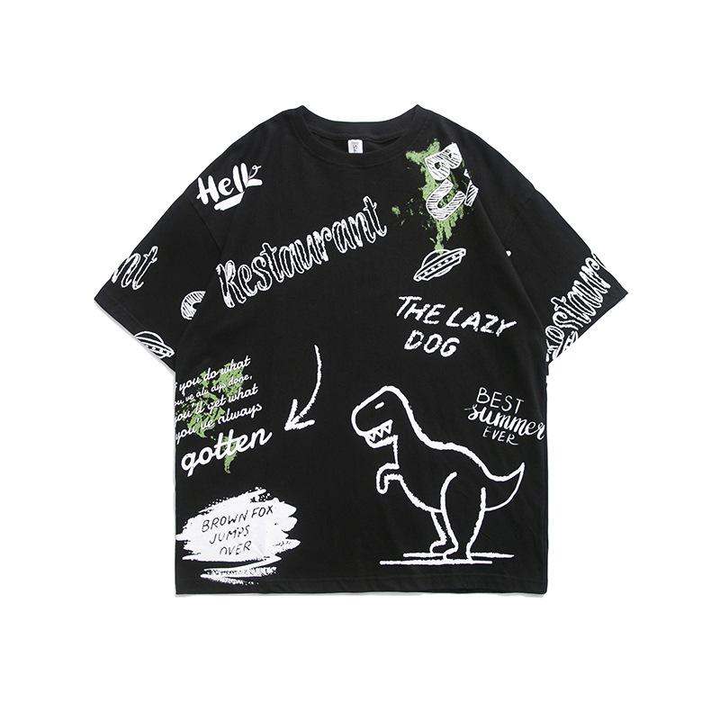 Men T Shirt Summer Casual Tops Men's Clothes Summer Wear Vintage Men's round Neck Short Sleeve Casual Loose Cartoon Dinosaur T-shirt