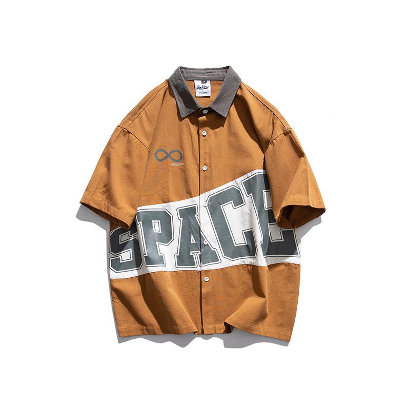 Men T Shirt Summer Casual Tops Men's Clothes Summer Wear Japanese Street Men's Lapel Shirt Casual Loose Color Matching Large Letter Shirt
