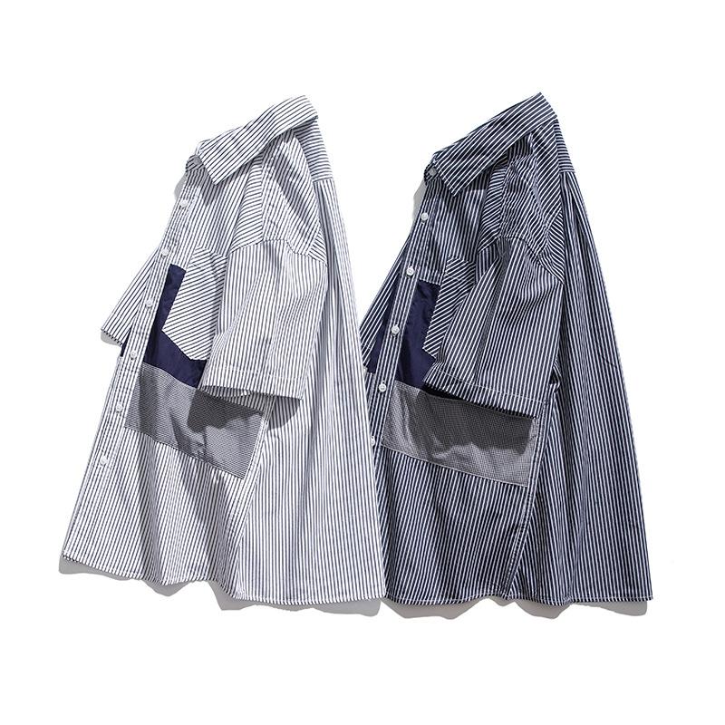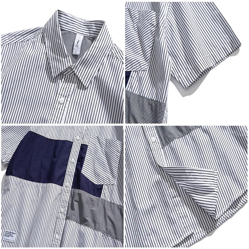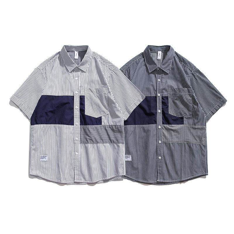 Men T Shirt Summer Casual Tops Men's Clothes Summer Wear Retro Men's Lapel Shirt Casual Loose Striped Color Matching Shirt Fashion