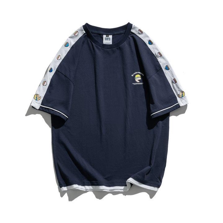 Men T Shirt Summer Casual Tops Men's Clothes Summer Wear Vintage Men's Short Sleeve Casual Loose Multicolor Printing Fake Two-Piece T-shirts
