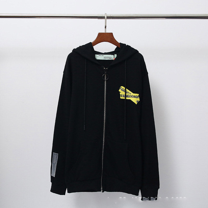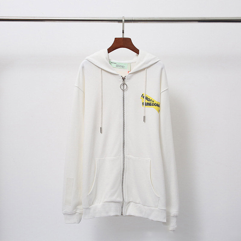 Off White Zipper Hoodie Autumn and Winter Zipper Hooded Jacket Sweater