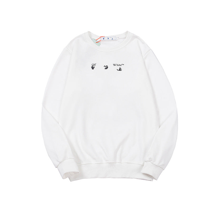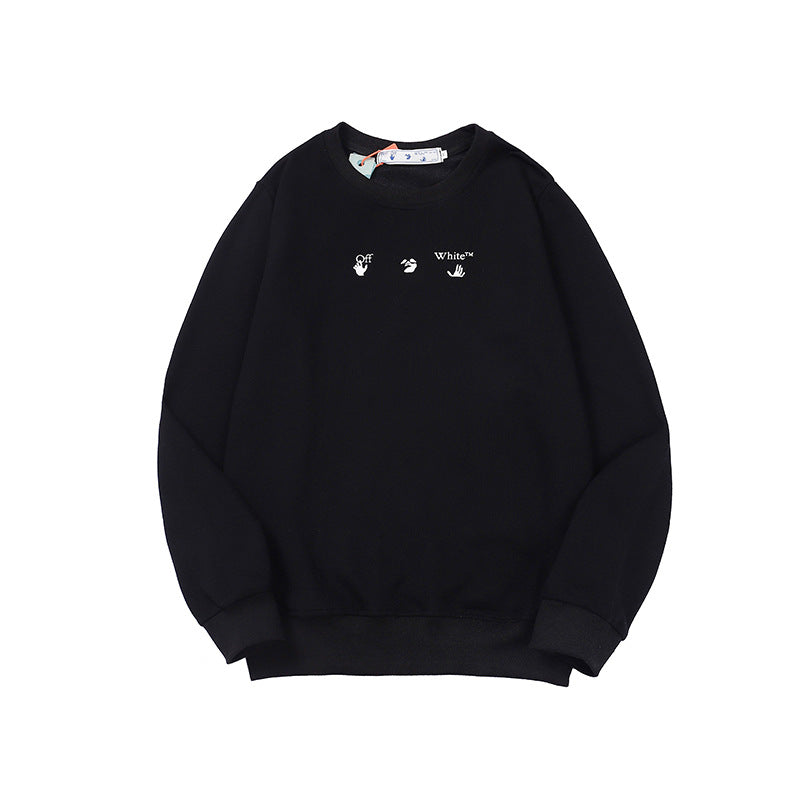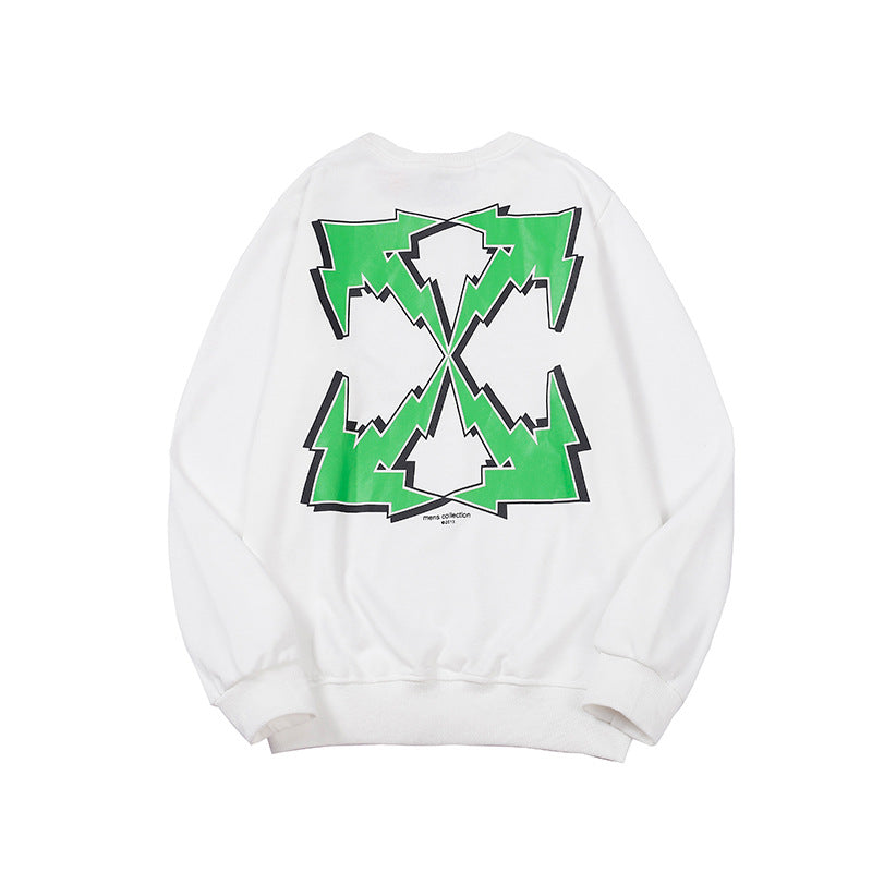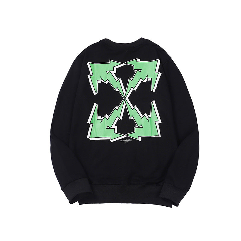 Off White Sweatshirts Long Sleeve round Neck Sweater Autumn and Winter Lightning Arrow Pattern round Neck Terry Sweater for Men and Women