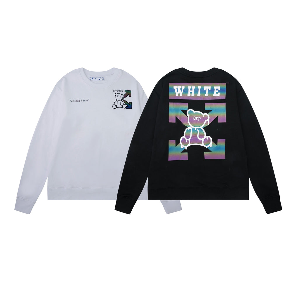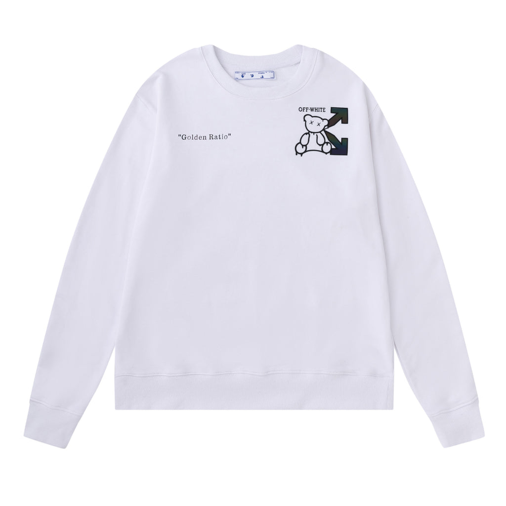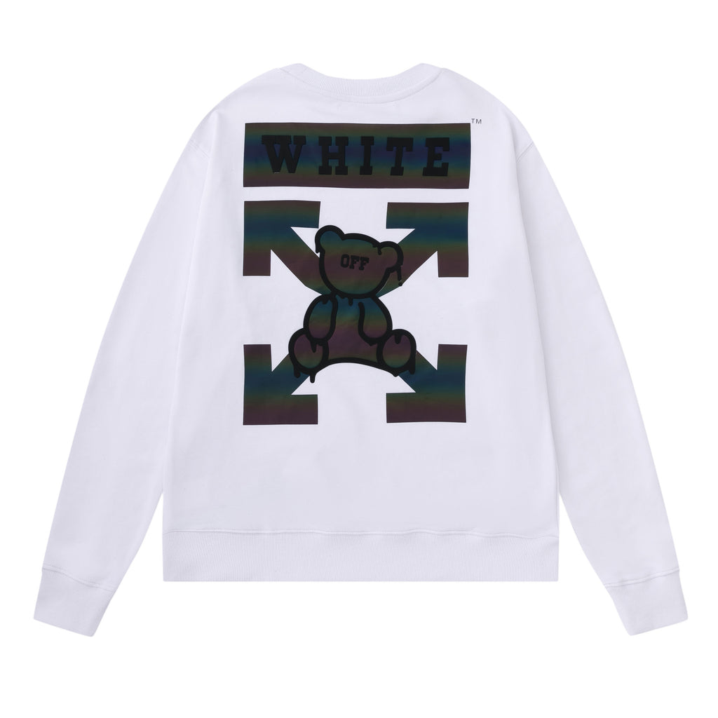 Off White Sweatshirts Long Sleeve round Neck Sweater Autumn and Winter Bear Arrow Pattern Sweater for Men and Women