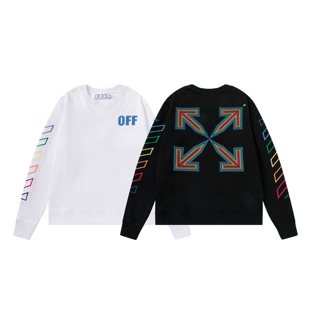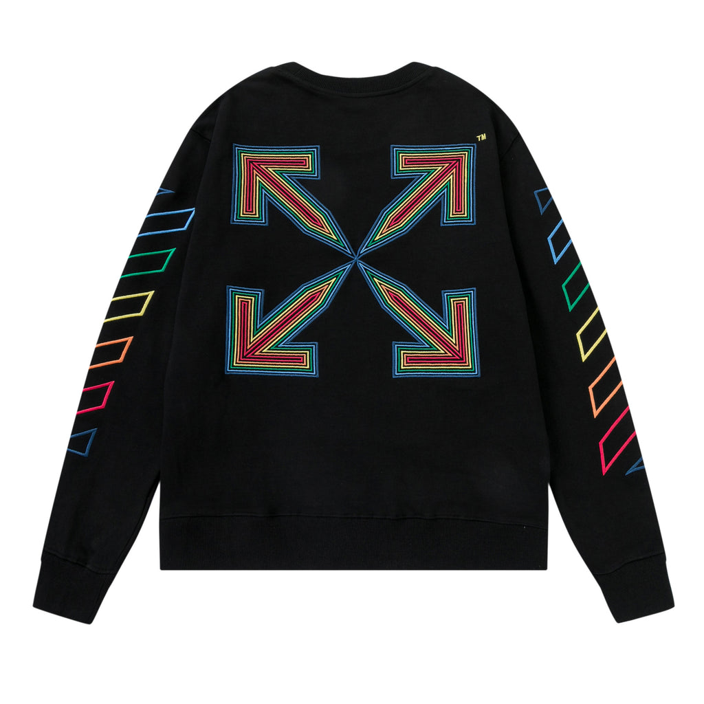 Off White Long Sleeve Round Neck Sweater Autumn And Winter Colorful Embroidery Arrow Crew Neck Pullover Sweatshirt Men And Women