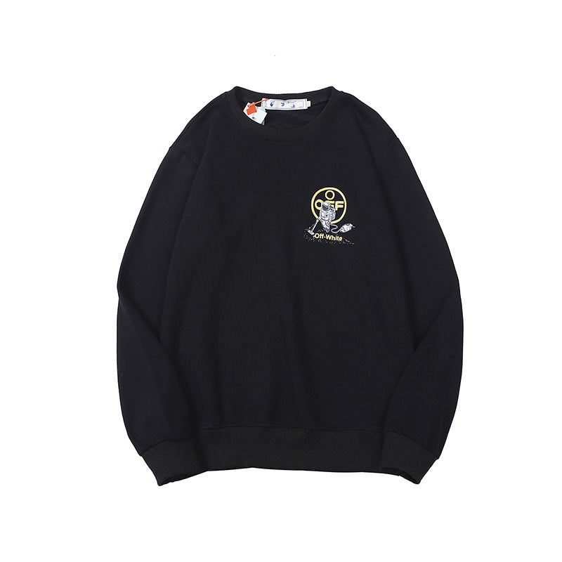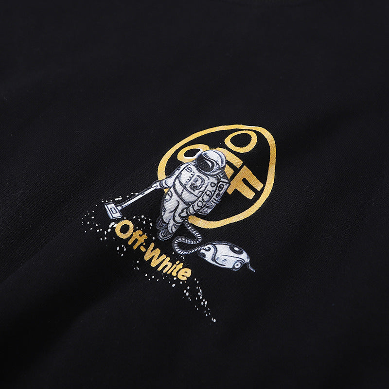 Off White Sweatshirts Long Sleeve round Neck Sweater Autumn and Winter Astronaut Vacuum Cleaner Pattern Terry Sweater for Men and Women