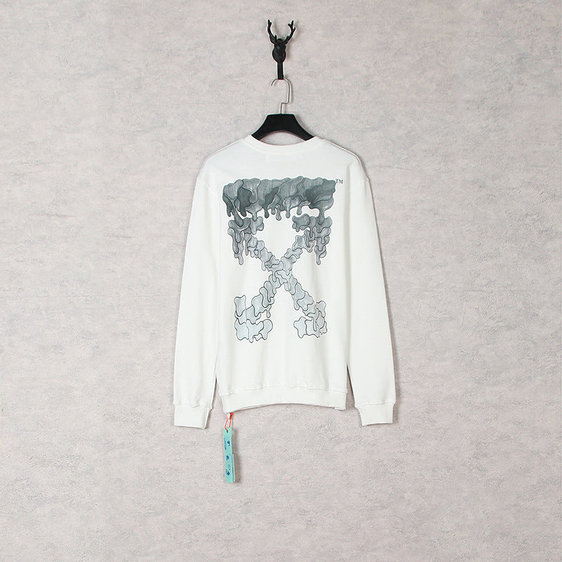 Off White Long Sleeve Round Neck Sweater Autumn And Winter High-Quality Off Gray Melting Arrow Pattern Crew Neck Pullover Sweatshirt