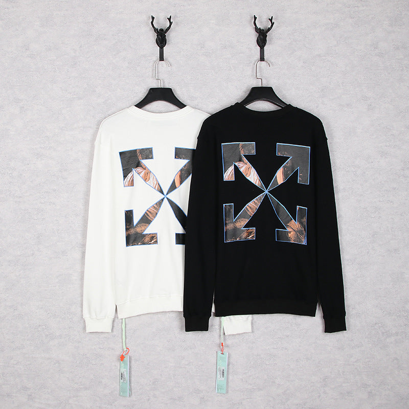 Off White Long Sleeve Round Neck Sweater Autumn And Winter Pattern Crew Neck Pullover Sweatshirt Men And Women