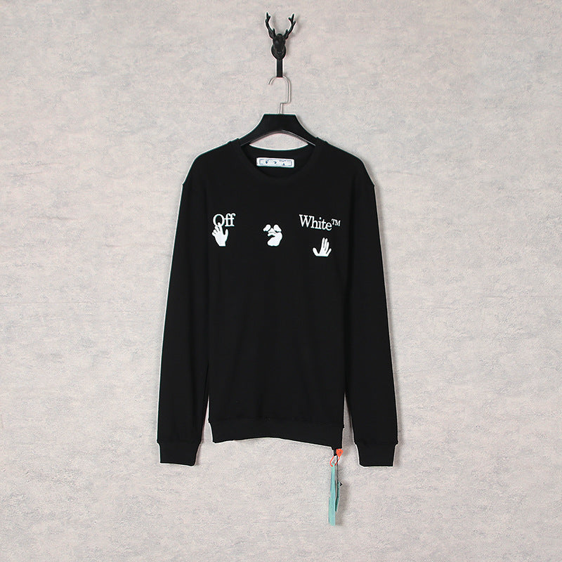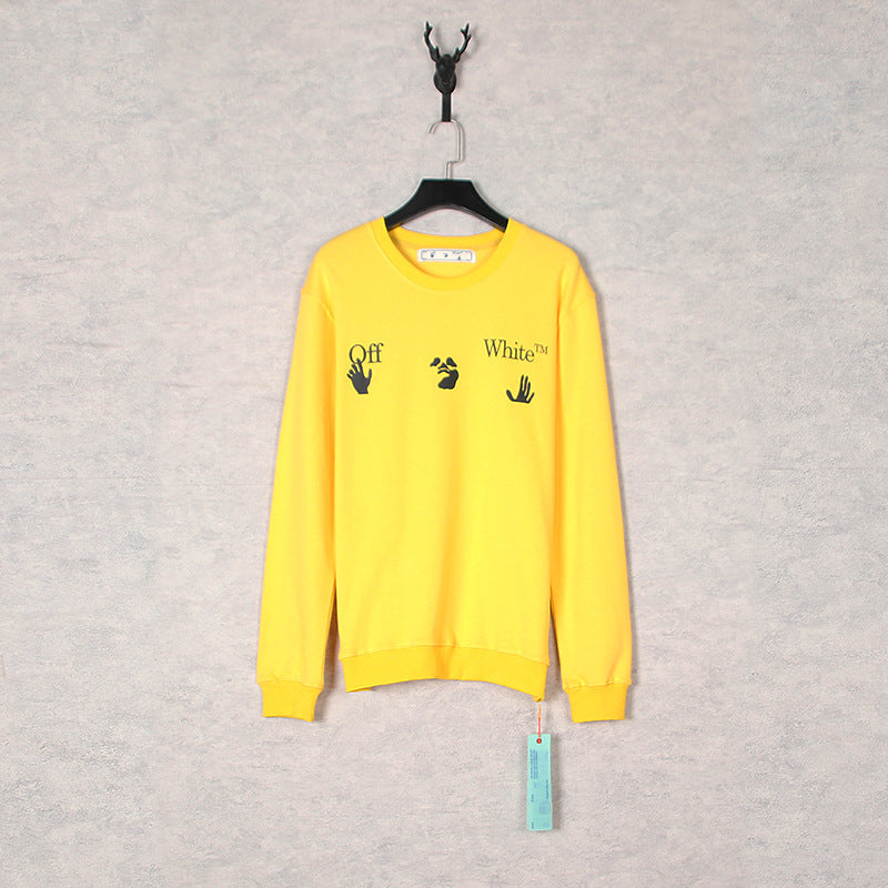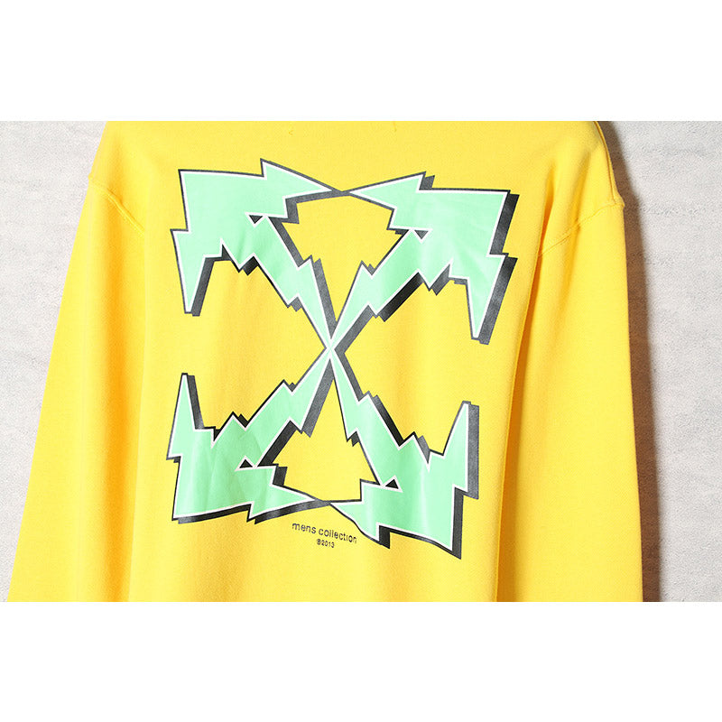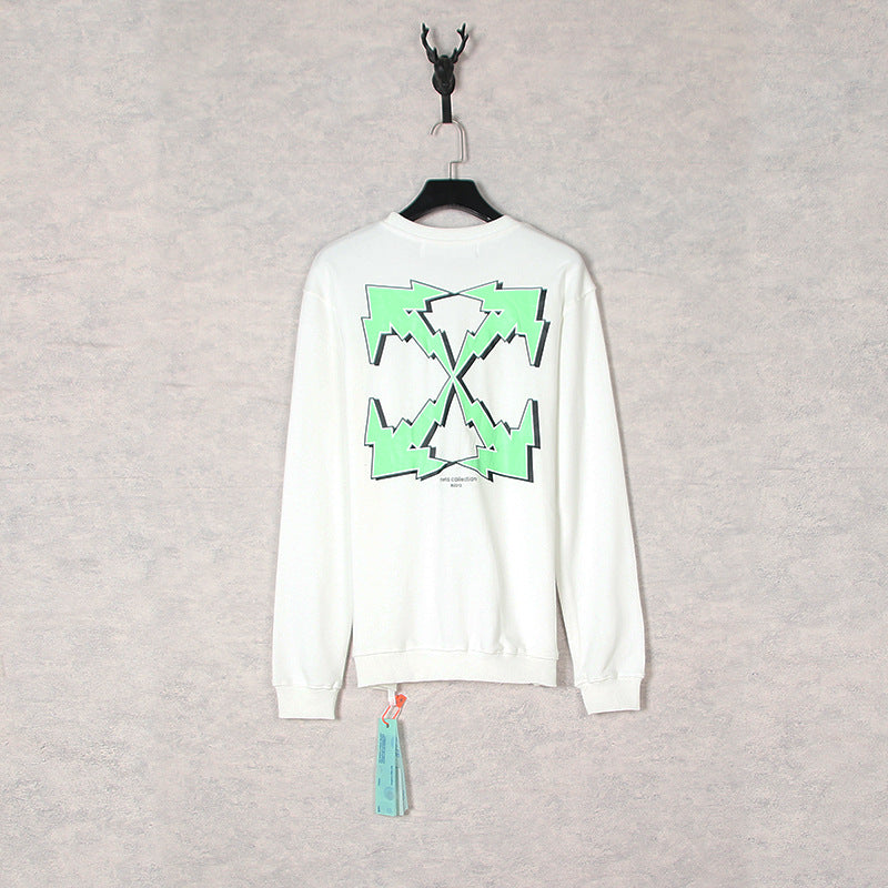 Off White Long Sleeve Round Neck Sweater Autumn And Winter Green Lightning Arrow Pattern Crew Neck Pullover Sweatshirt