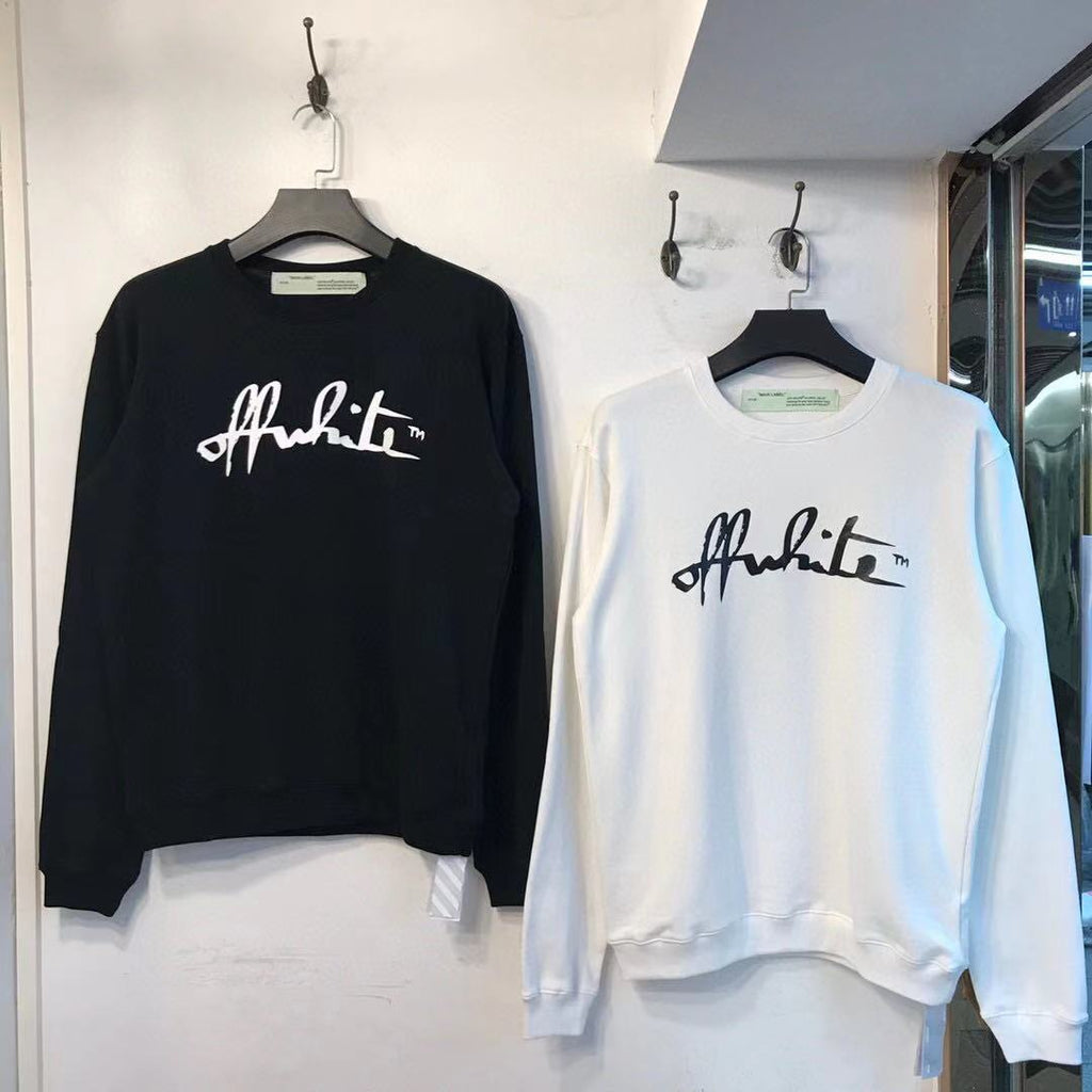 Off White Long Sleeve Round Neck Sweater Letter Crew Neck Pullover Sweatshirt