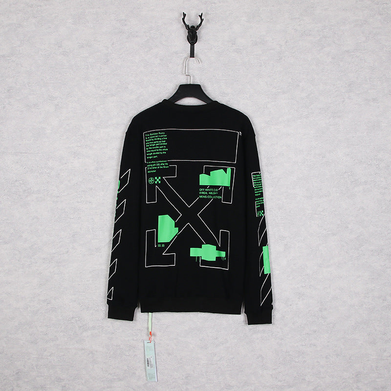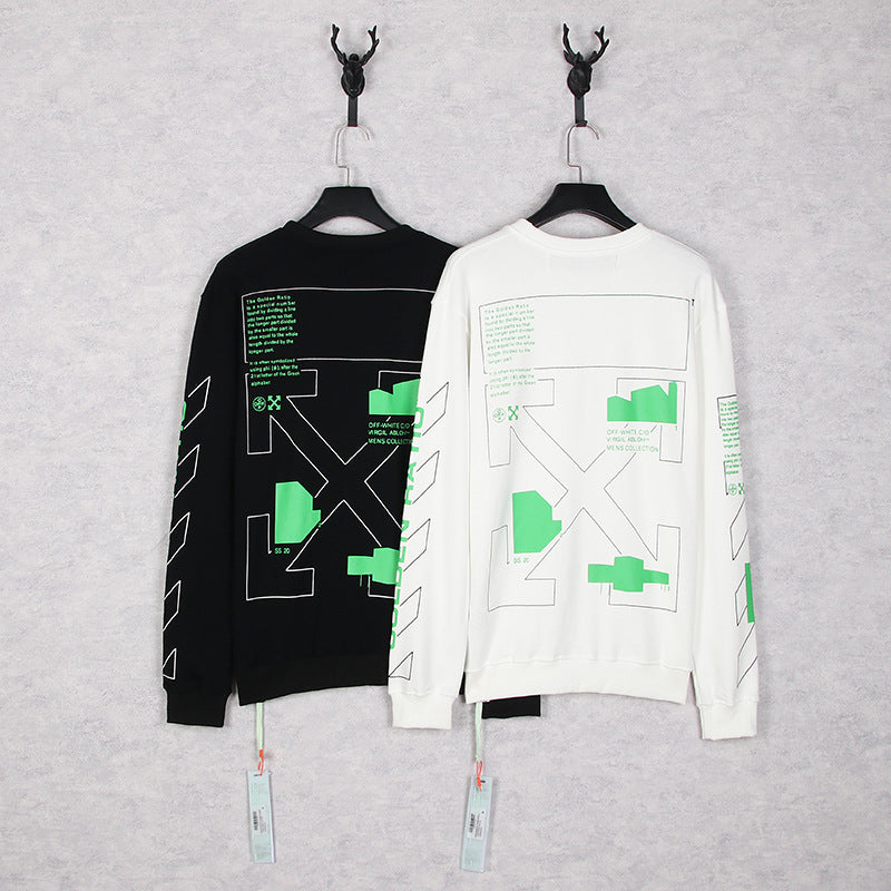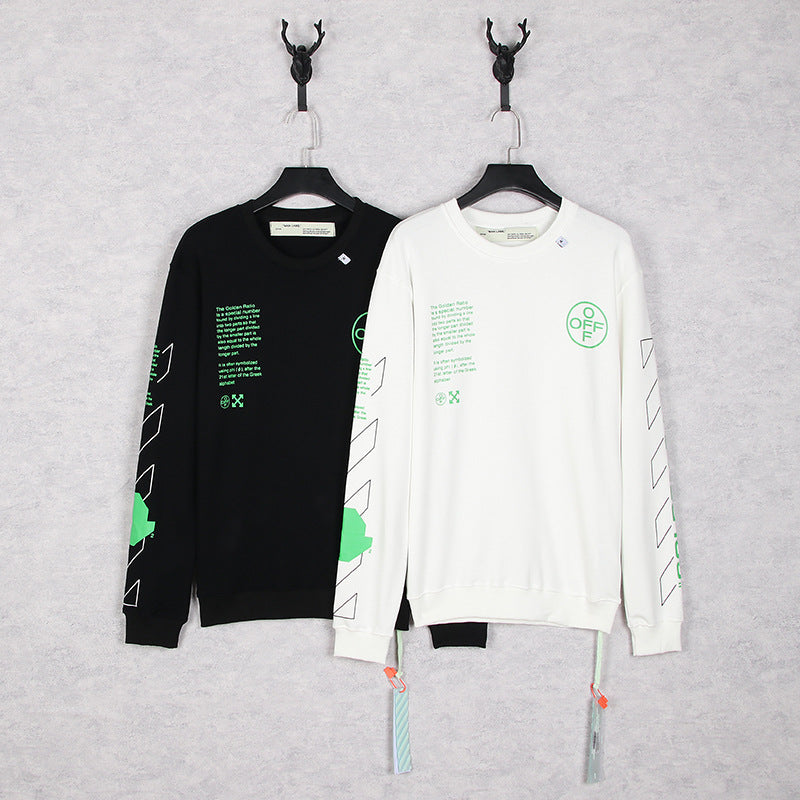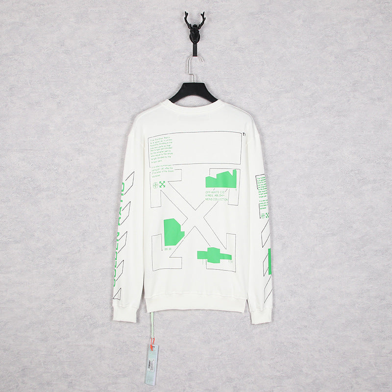Off White Long Sleeve Round Neck Sweater Fall/Winter Crew Neck Pullover Sweatshirt