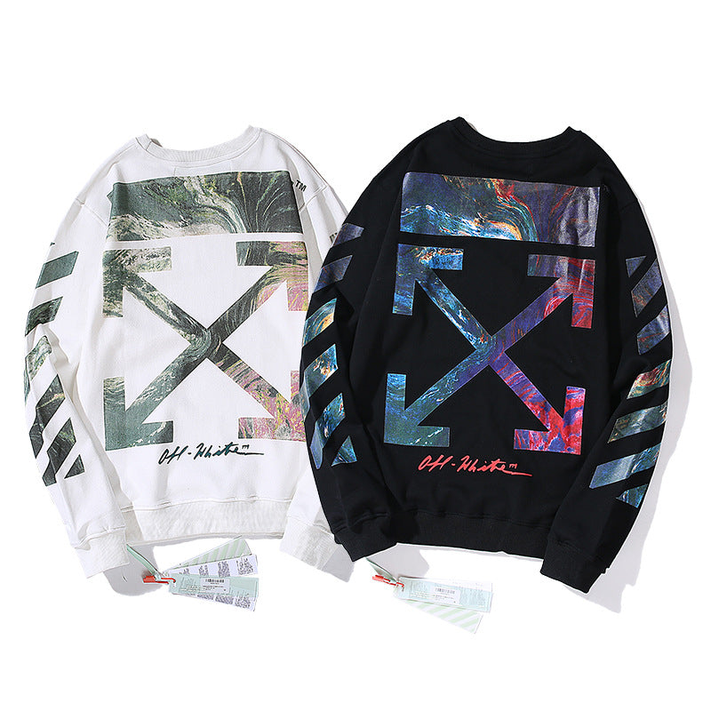 Off White Sweatshirts Long Sleeve round Neck Sweater Gradient Starry Sky Graffiti Arrow Print Leisure