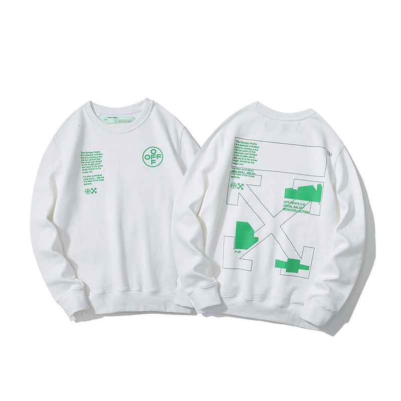 Off White Sweatshirts Long Sleeve round Neck Sweater Graffiti Sketch Letter Arrow Pure Cotton round-Neck Pullover
