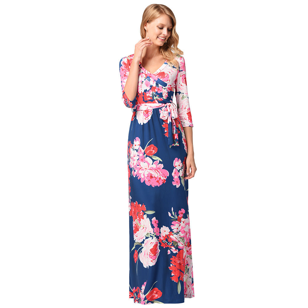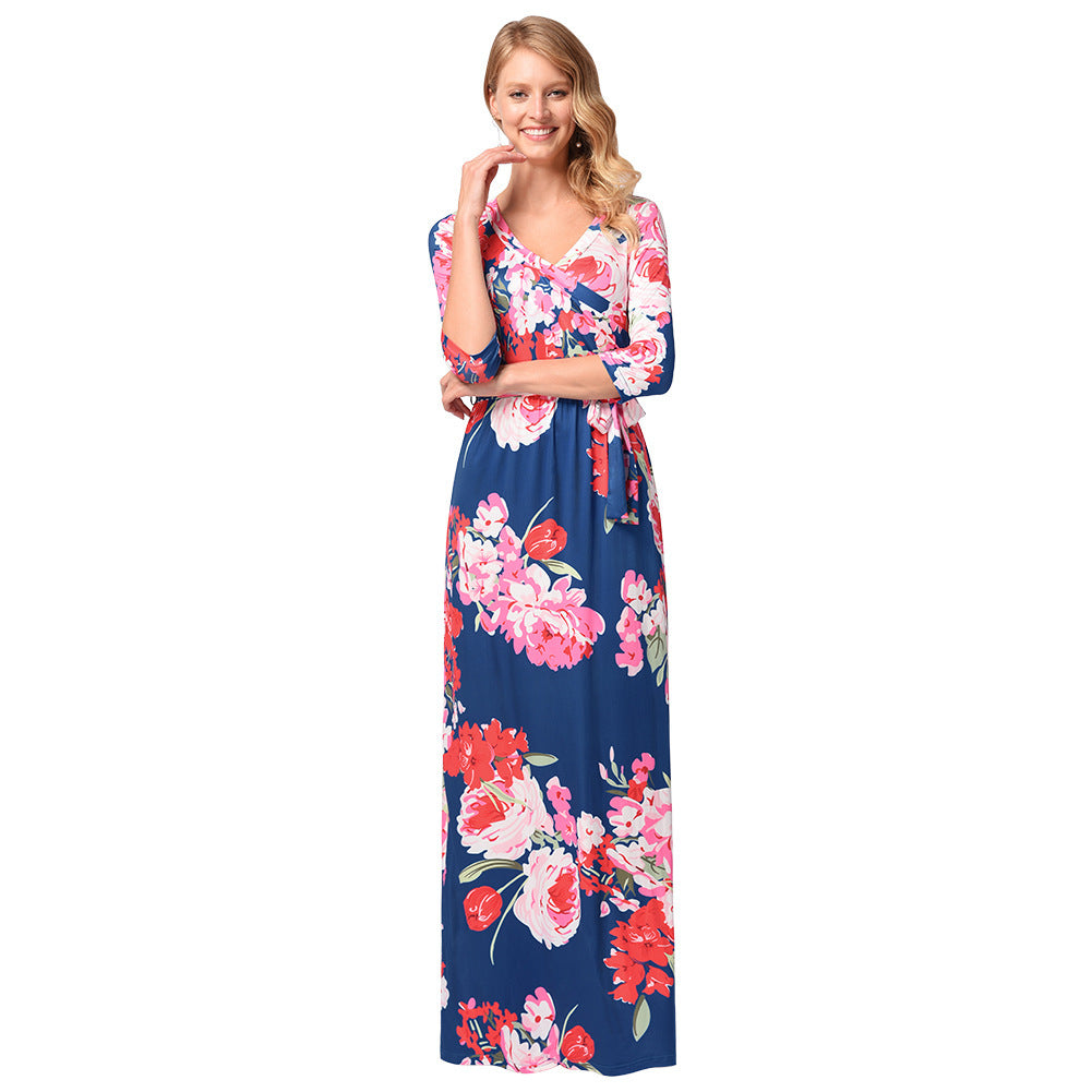 Women Plus Size Maxi Dresses Printed Beach Vacation Half Sleeve V-neck Dress