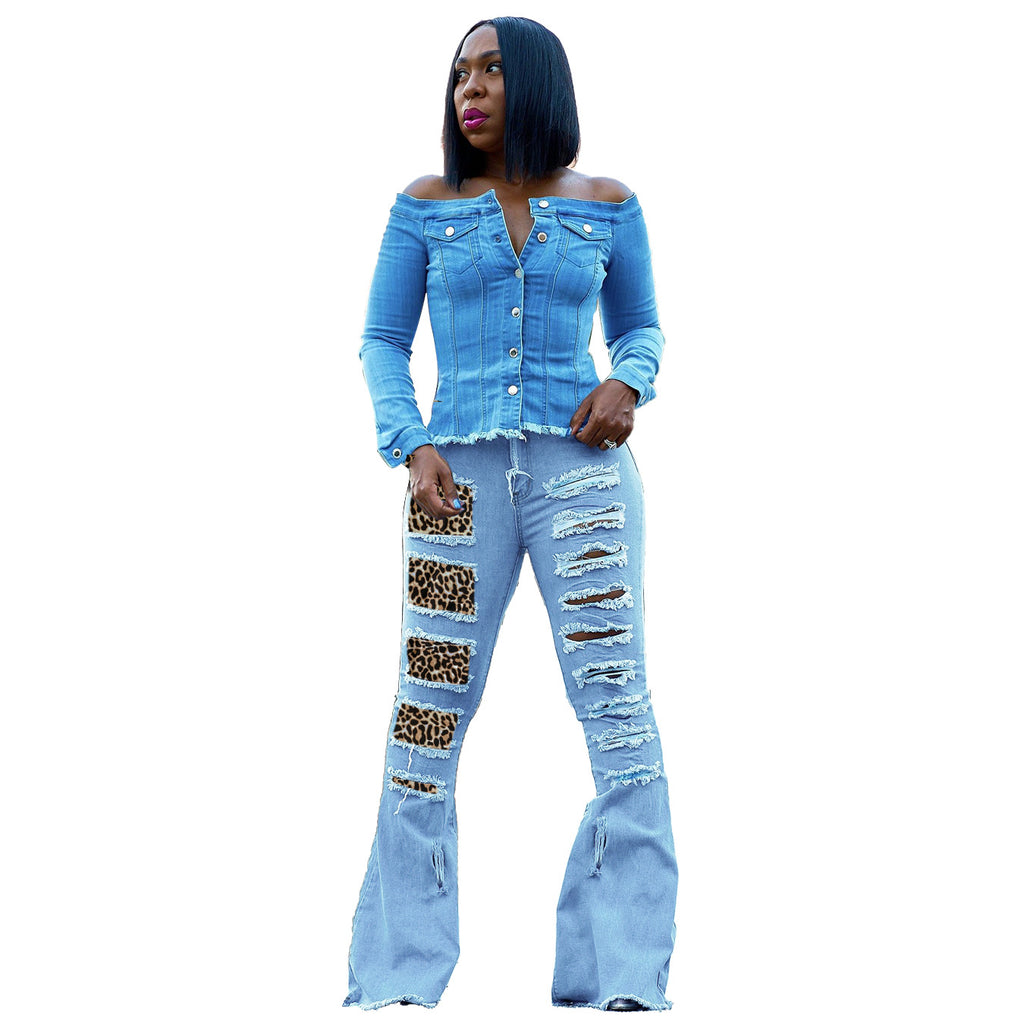 Women Plus Size Jeans Fashion Leopard Splicing Pants