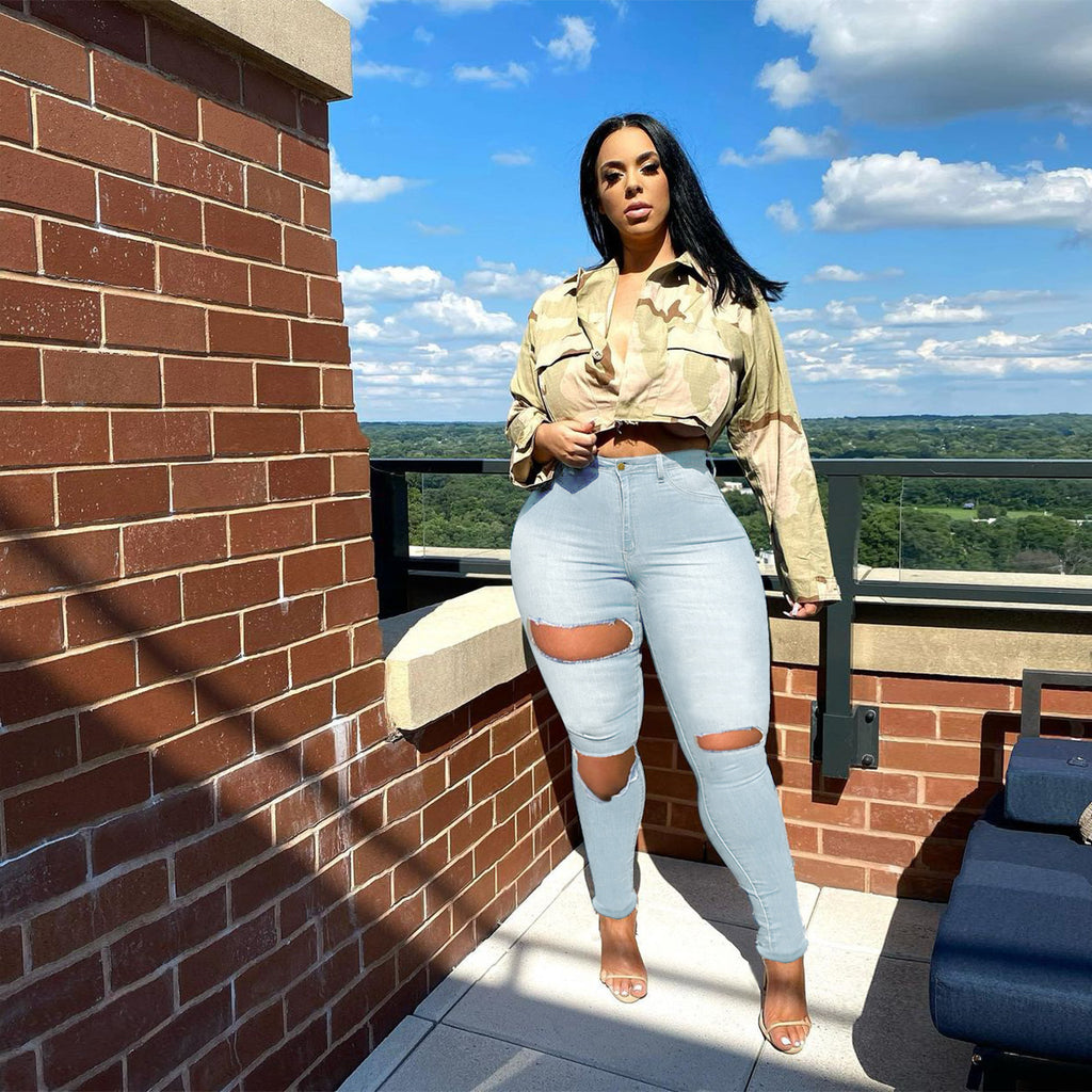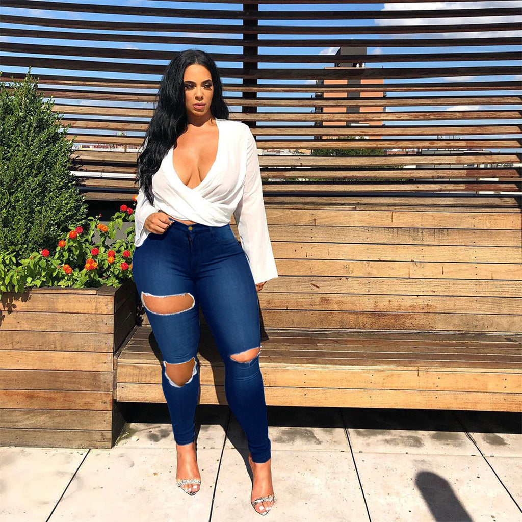 Women Plus Size Jeans Fashion Holes Slim Fit Skinny Pants for Women
