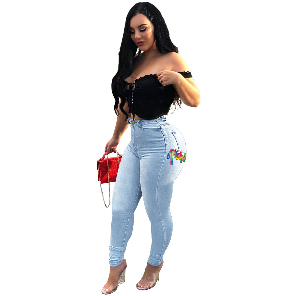 Women Plus Size Jeans Slim-Fit Lace Up Denim Skinny Pants