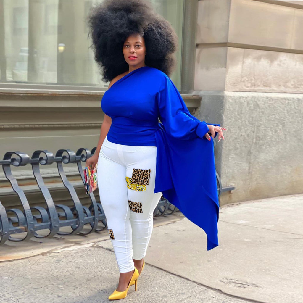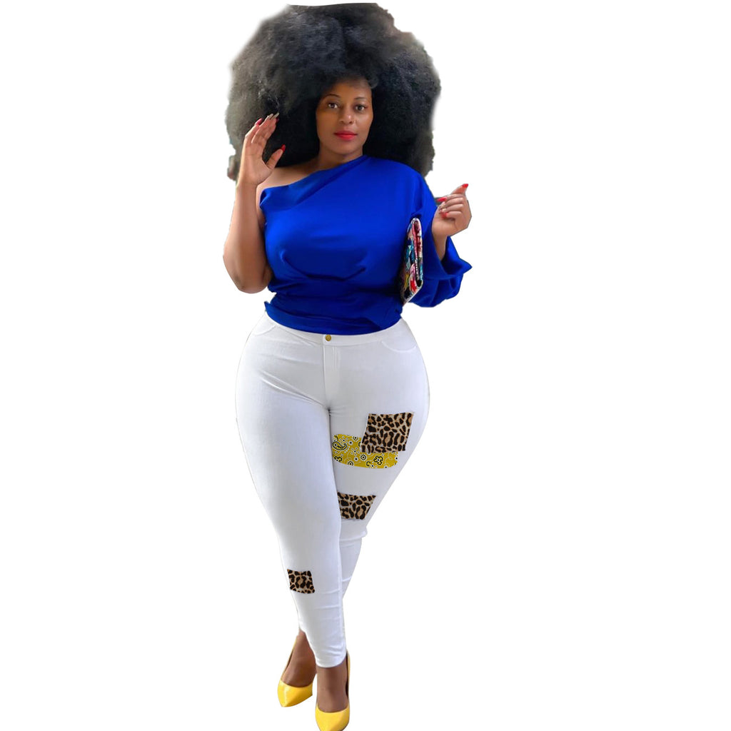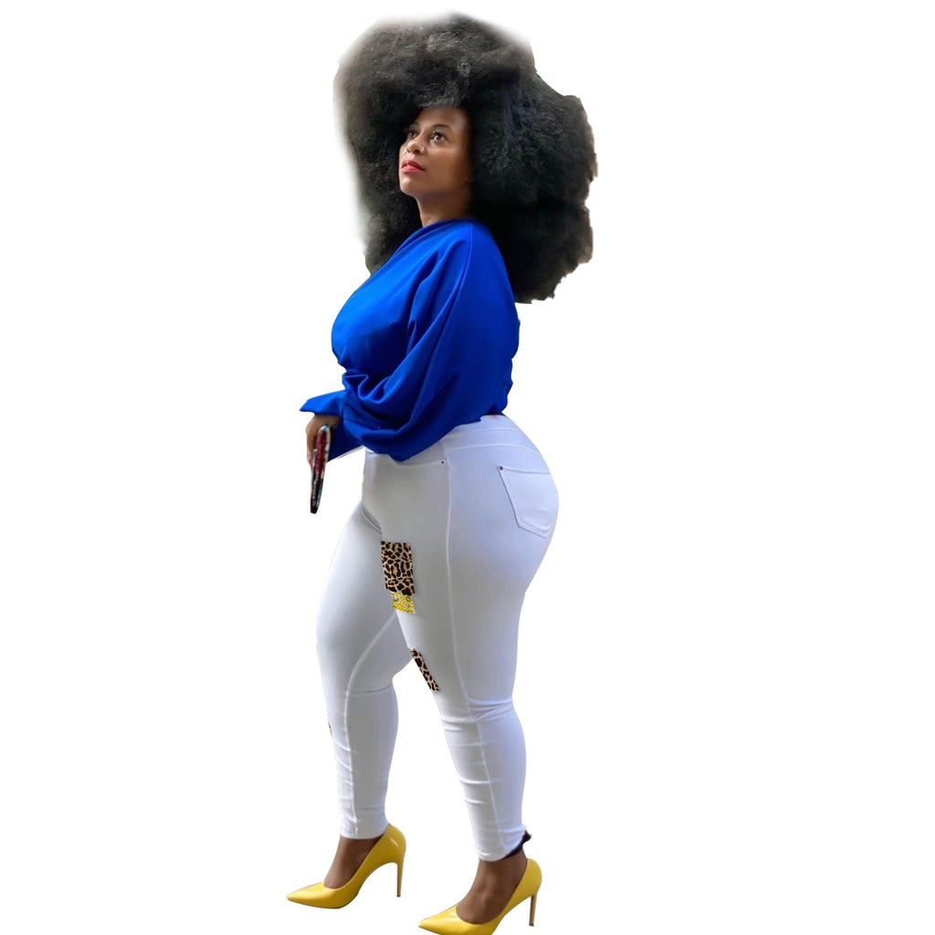 Women Plus Size Jeans Leopard Splicing Slim Denim Pencil Pants