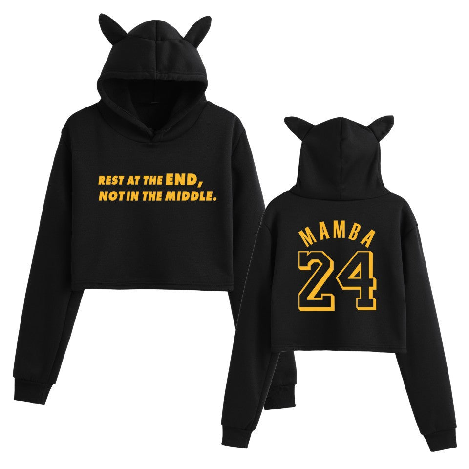 In Memory of Kobe Hoodie Kobe Peripheral Printing Casual Women Navel Cat Ear Sweater