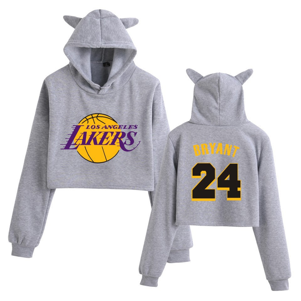 In Memory of Kobe Hoodie Kobe Peripheral Printing Casual Women Navel-Exposed Cat Ear Sweater