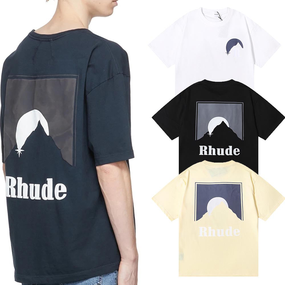 Rhude T Shirts Black Moon Print Loose Casual Short Sleeve Men and Women