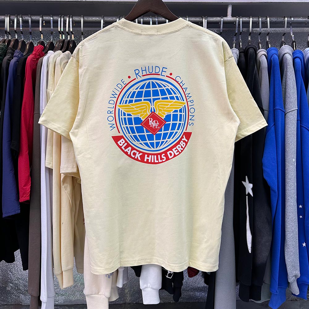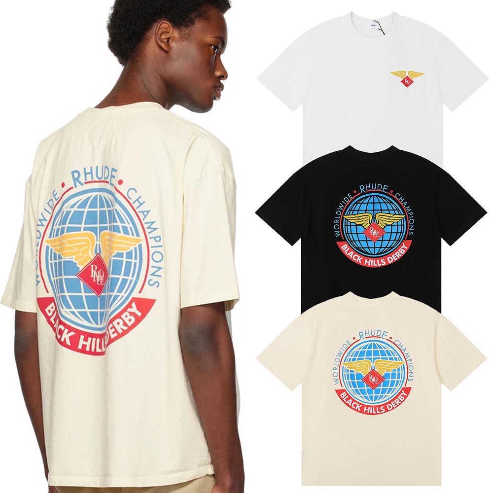 Rhude T Shirts World Map Printed Cotton Casual Short Sleeves Men and Women