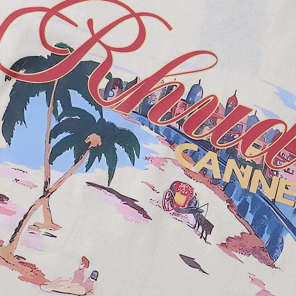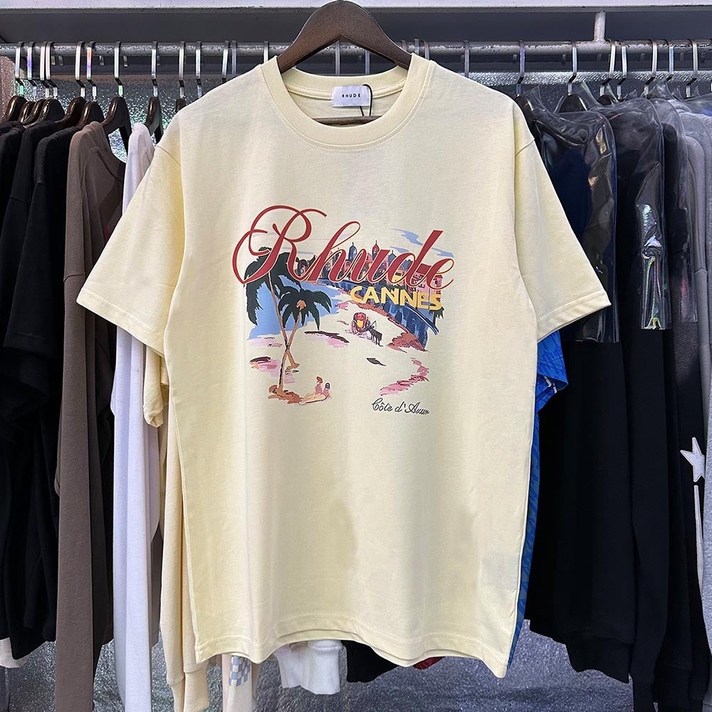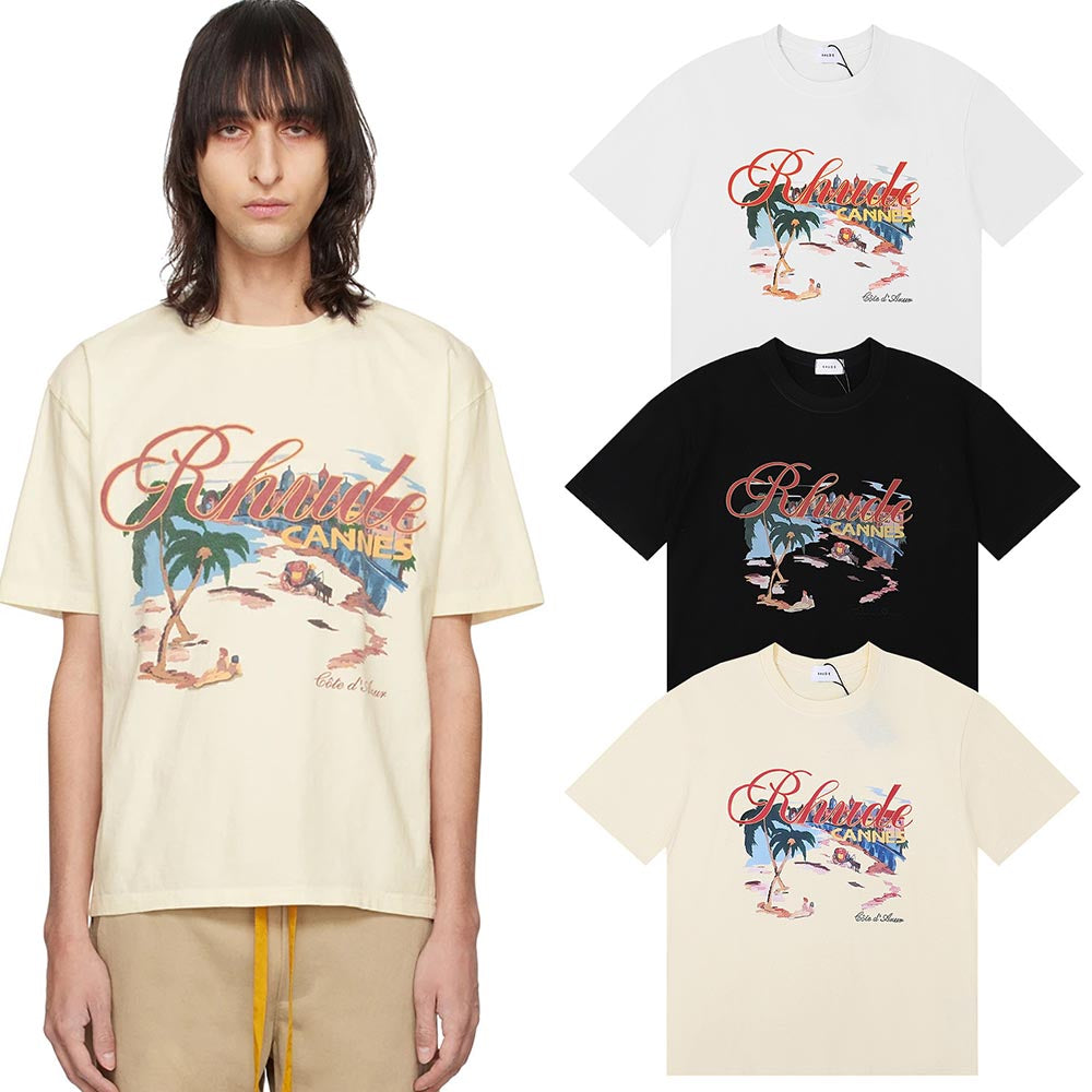 Rhude T Shirts Cannes Beach Coconut Printing Cotton Casual Short Sleeves Men and Women