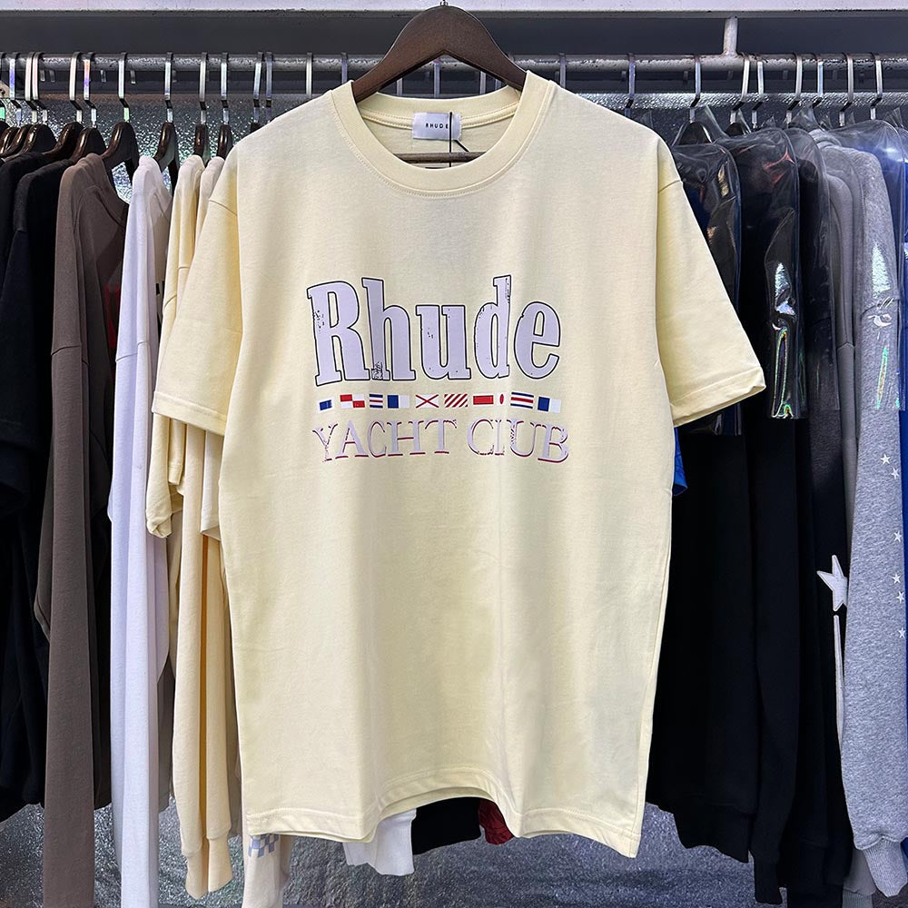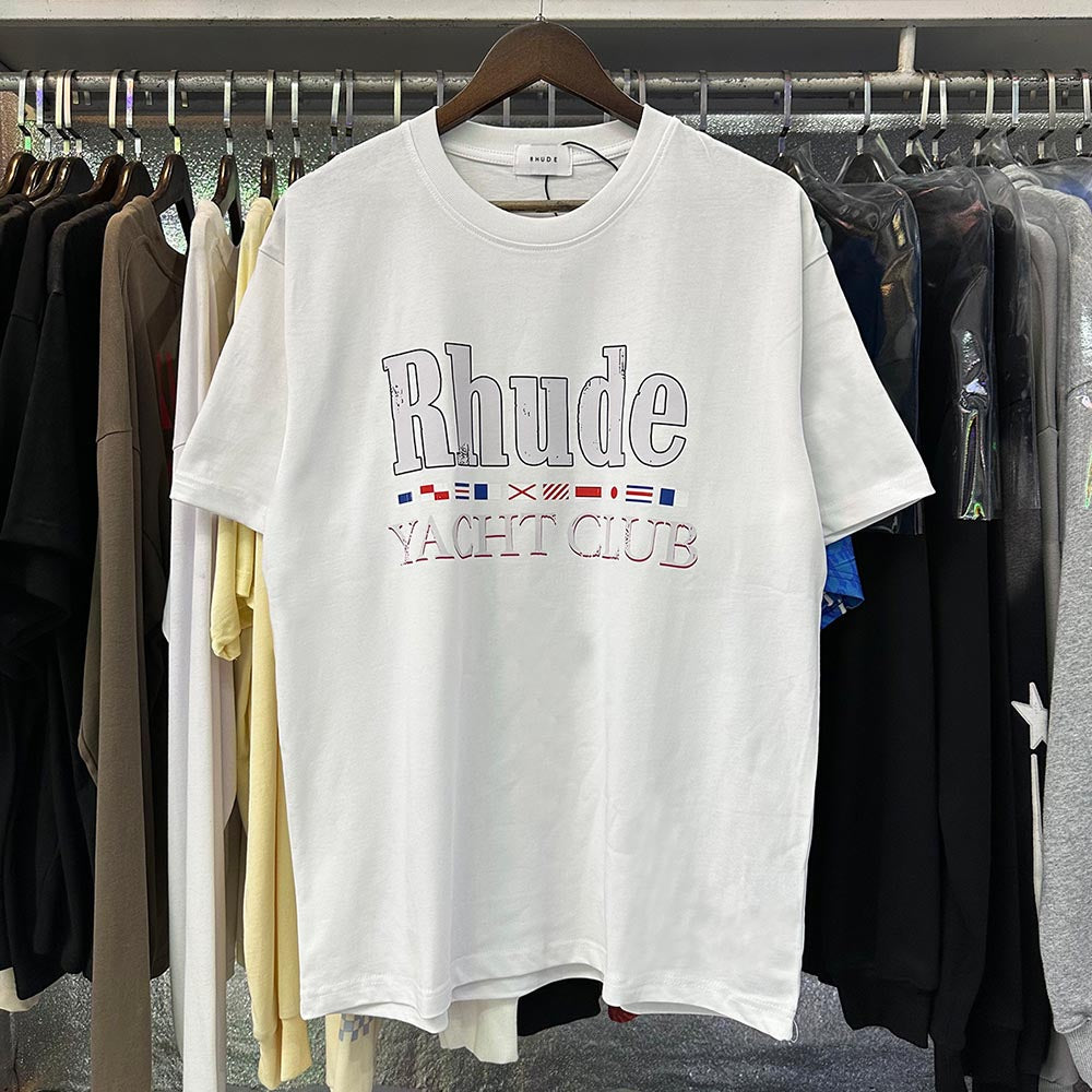 Rhude T Shirts Flag Printing Cotton Casual Short Sleeves Men and Women