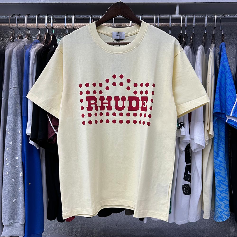 Rhude T Shirts Red Polka Dot Printed Cotton Casual Short Sleeve Men and Women