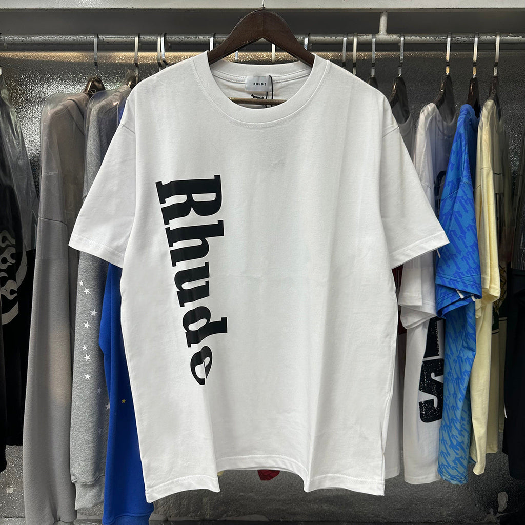 Rhude T Shirts Vertical Solid Color Printed Cotton Casual Short Sleeve Men and Women