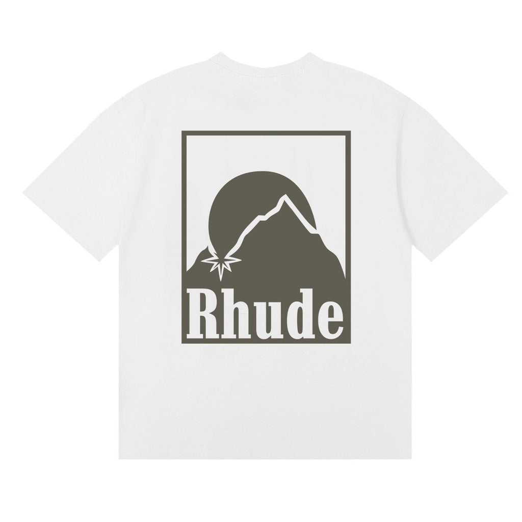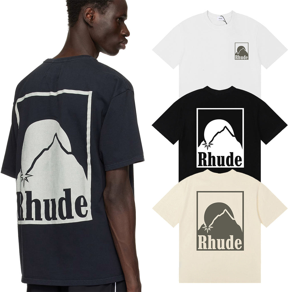 Rhude T Shirts Moon Badge Printing Cotton Casual Short Sleeve Men and Women