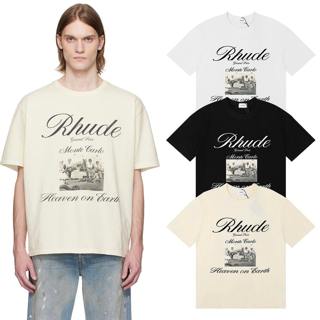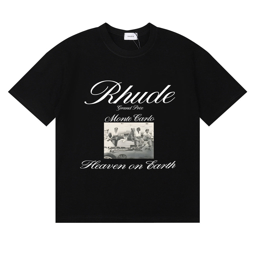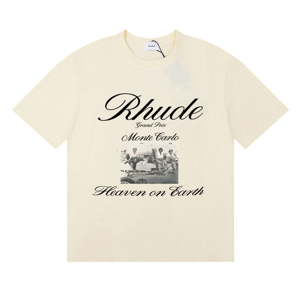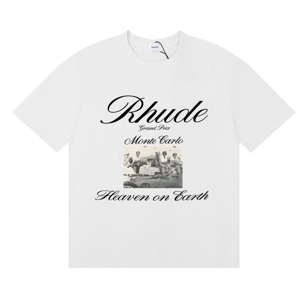 Rhude T Shirts Heave on Earth Printed Cotton Casual Short Sleeve Men and Women