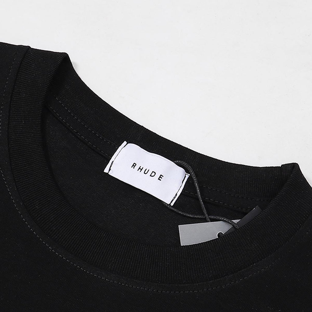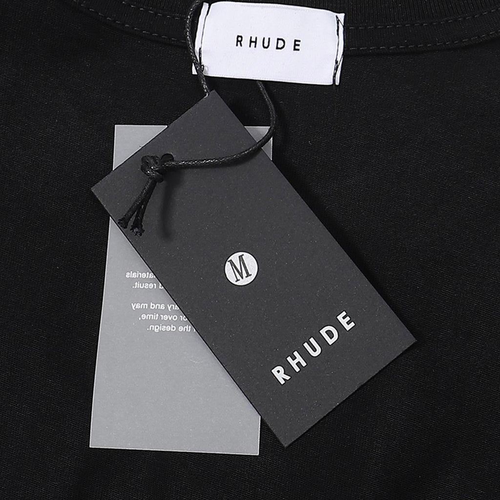 Rhude T Shirts Gothic Letter Badge Printing Cotton Casual Crew Neck Short Sleeve Men and Women