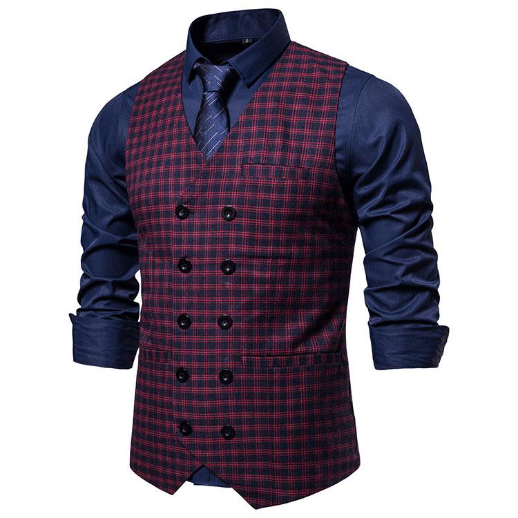 Tuxedo Vests Men Suit Vest European and American Fashion Plaid Vest Personality Fashion