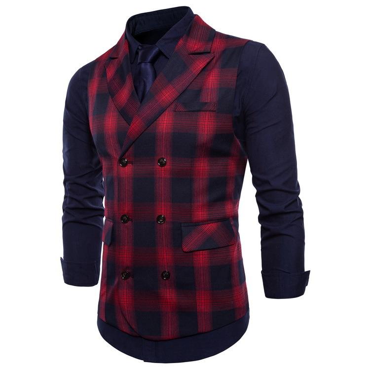 Tuxedo Vests Men Suit Vest Autumn Men's Casual Solid Color Double Breasted Vest Suit