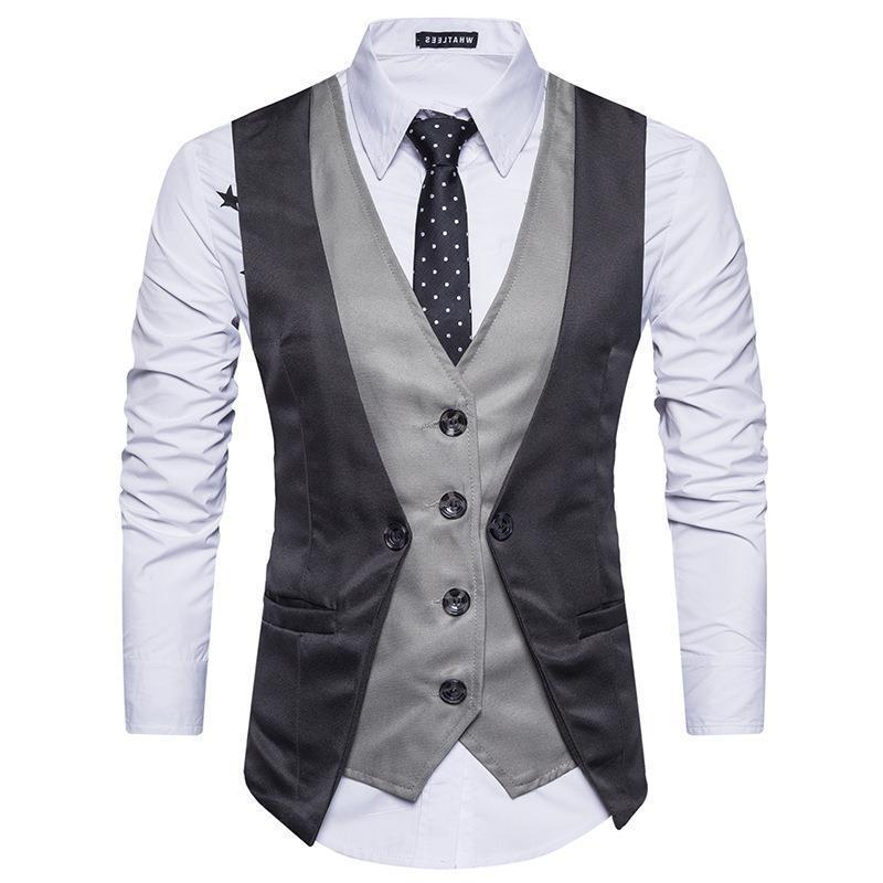 Tuxedo Vests Men Suit Vest Suit Vest Buckle Men's Stitching Gentleman Men's Clothing