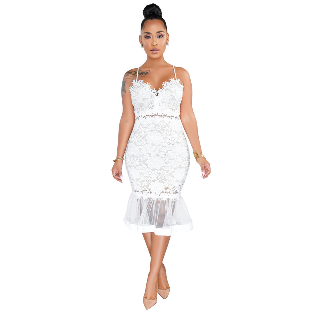 Sexy Women Clothing Lace Fishtail Skirt Swing See-through Dress